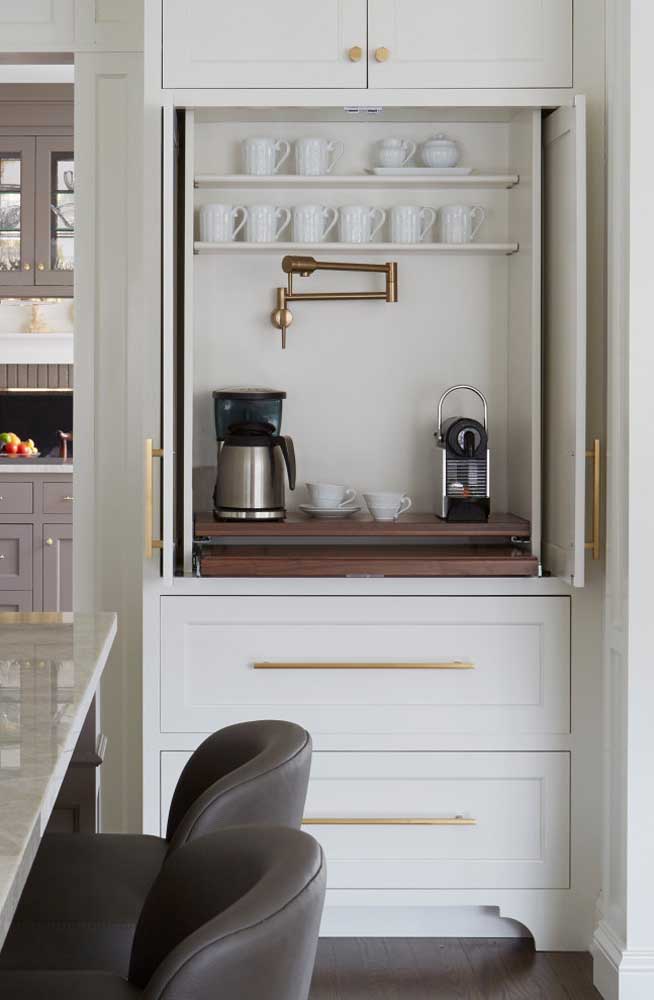 The items that will make up the coffee corner vary greatly according to your daily use needs. But, in general, two elements are indispensable: coffee maker and cups.