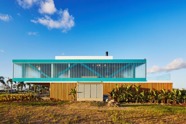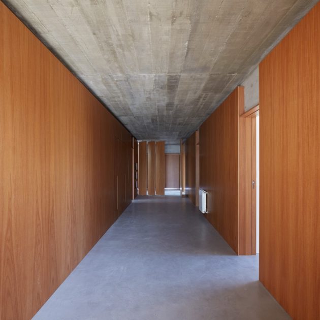 • Ground floor: Private areas, including five suites and service rooms, sheltered with concrete structure and wooden cladding.