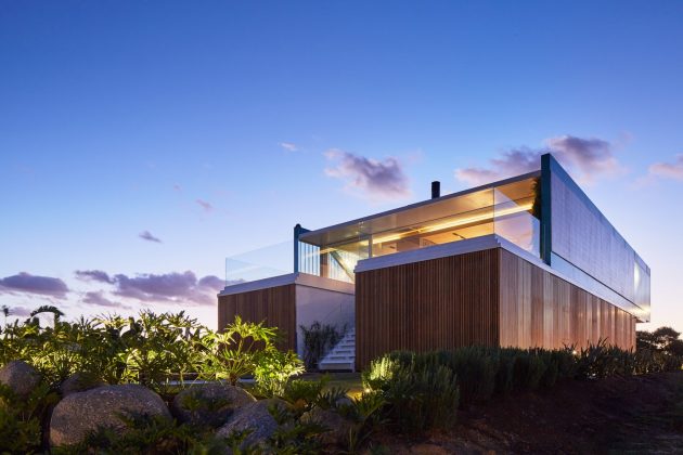 The combination results in a house that is both visually grounded and elevated, with a refined material dialogue.