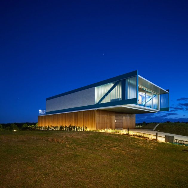 Arquitetura Nacional designed the Claudios House in Eldorado do Sul, Brazil, a striking 5,381 sq ft (500 m²) two-story residence that combines privacy, modern structure, and panoramic views. Built for a young couple with a child, the project balances tranquility for daily living with open, expansive spaces for entertaining.