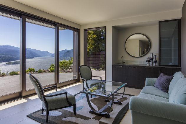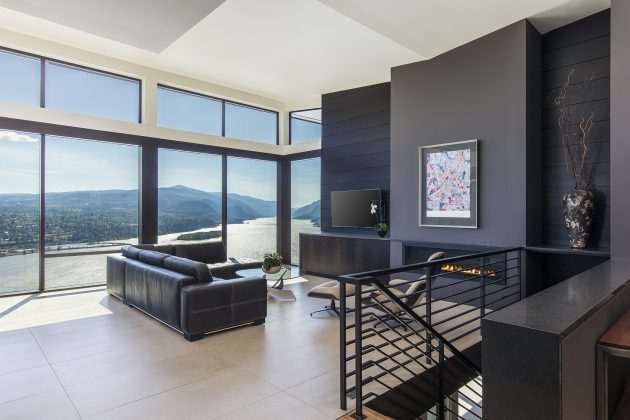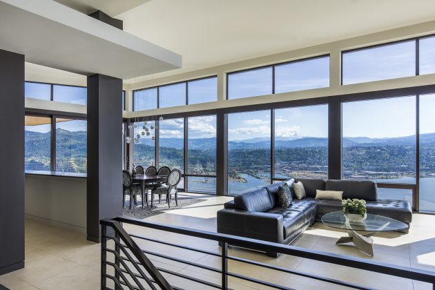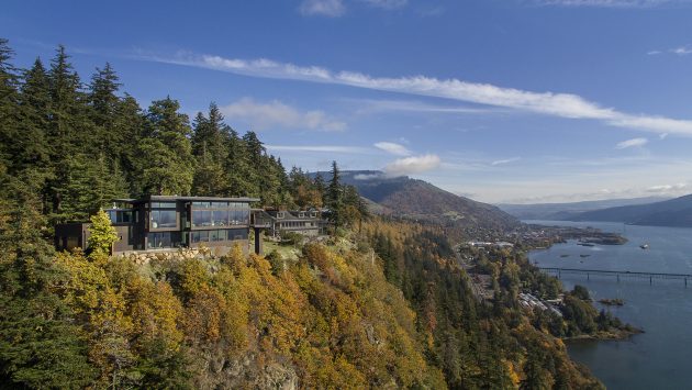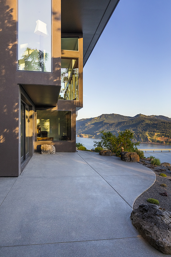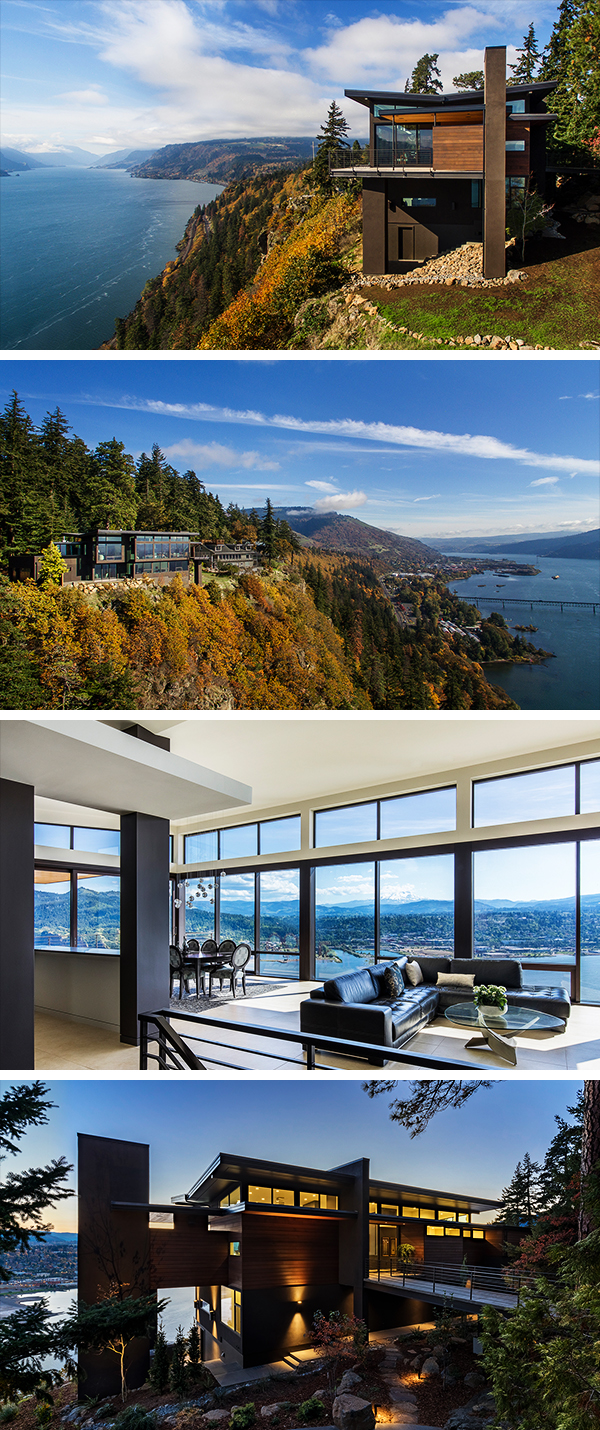 Perched high above the Columbia River on a rocky bluff, Cliff House is a modern family retreat within minutes of the clients’ favorite playgrounds for windsurfing, skiing, or mountain biking.