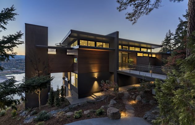 The Cliff House is a wonderful modern family home by Giulietti Schouten ArchitectsIt is perched on a lot above the Columbia River in the city of White Salmon in Washington, USA. It’s remote location enables the inhabitants of this residence to enjoy spectacular views of the gorgeous natural environment that surrounds it.