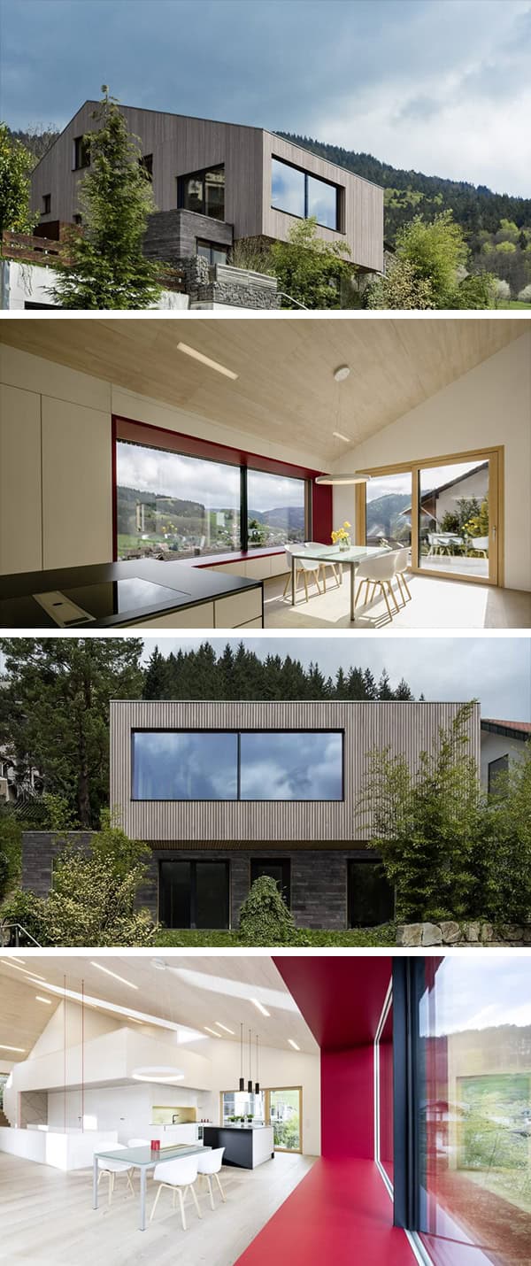 From the architects: “London practice UberRaum Architects have built a mountainside house with dramatic interiors and framed views inspired by its surrounding landscape.