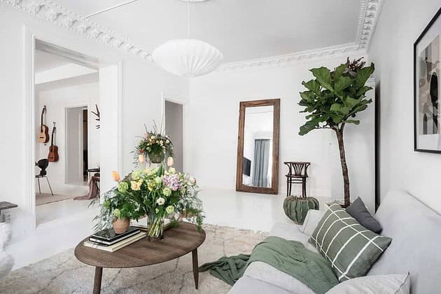 If you miss fresh plants and flowers at home as much as we do, we invite you to take a tour of this apartment where you can see vases and flowerpots in all rooms. The quarantine has left us without our visits to the nursery to stock up on new pots for the new season on the terrace, not even a few flowers can we buy from time to time to brighten up our living room.