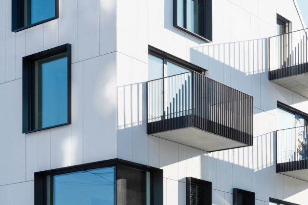 The body has also been enriched with balconies which, due to the function of the building, appear from the second floor. Their large projection combined with subtle details create a strong differentiation of residential floors.
