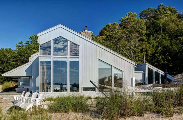 Lake Michigan is a sight that can simply take your breath away and in order to protect it and its immediate environment, the State of Michigan has a law that regulates development on the dune system around the lake. A 1970s era home happened to be located on one of these so called ‘critical dunes’ and its owners saw plenty of potential in the amazing environment around the home, so they decided to give Lakeshore Custom Homes a call and have them turn the old home inside out and give it a total contemporary makeover.