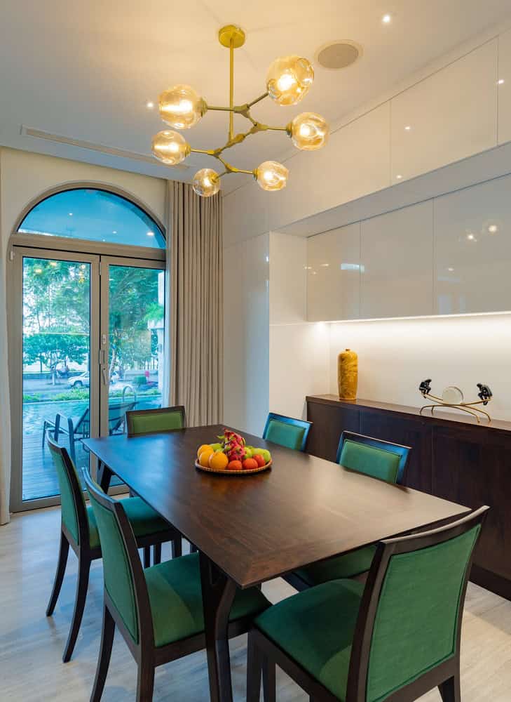 Main spaces in the buildings are all facing the sea. The spaces are open enough to allow natural light and breezes in, though still providing the privacy needed for the family. The interior style of the villa brings a sense of modern European style and luxury in form and material. Greenery is applied under careful consideration throughout the building, blending in with the green Napoli marble cladding, and creating a refreshing feeling that does not lose the personality of the building.