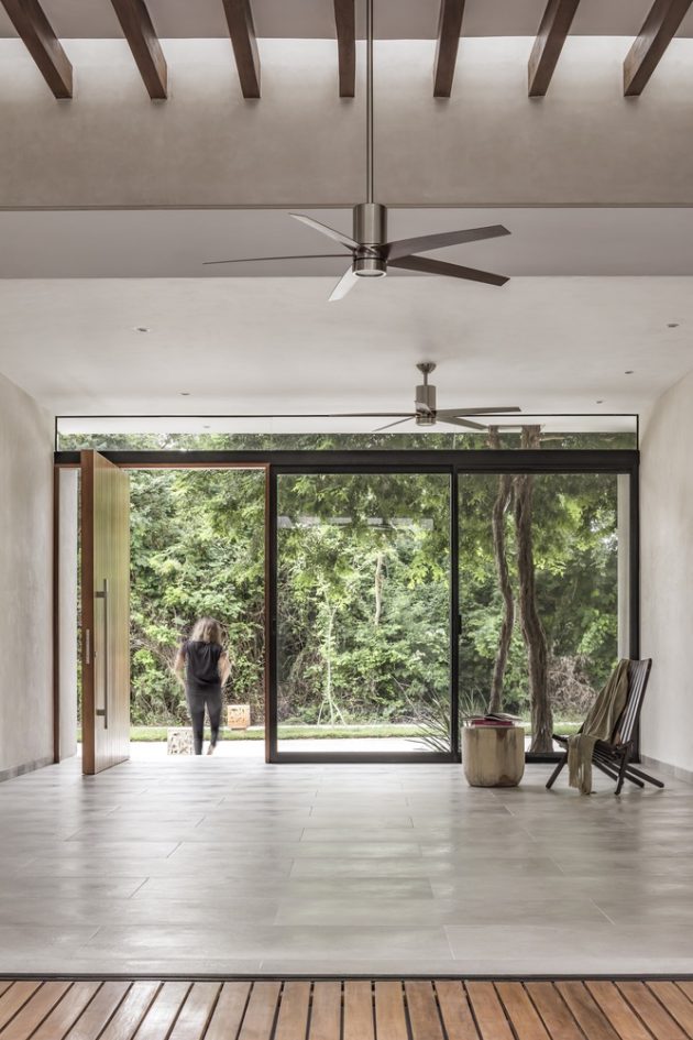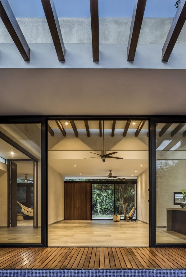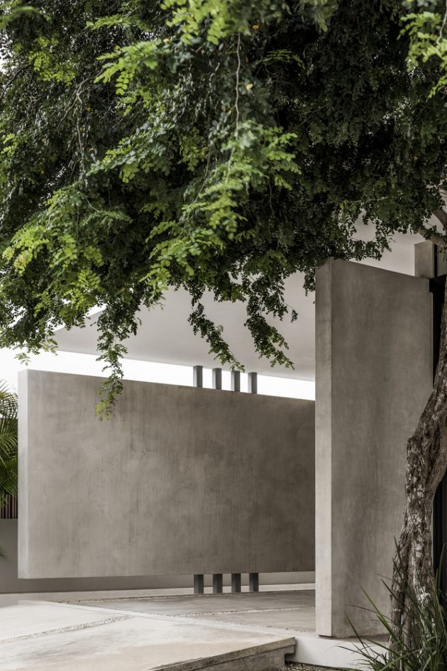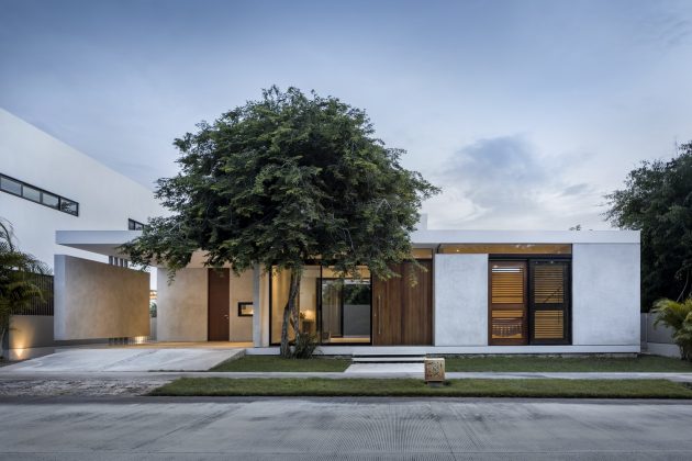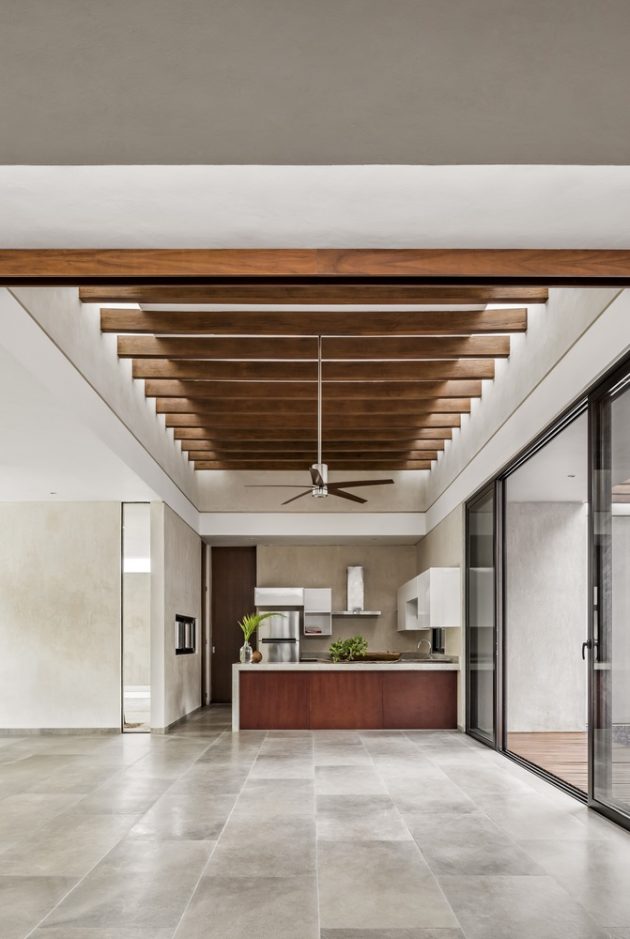 Arista Cero has designed a stunning modern, single-story residence in the capital of Mexico’s Yucatan state – Merida. This leisure home is located on a square-shaped lot within a golf club lot and provides its residents with 2,561 square feet of living spaces. It is surrounded by beautiful landscaping and patio areas that are connected to the interior through an opening in the dinin room which is kind of the center of this whole project.