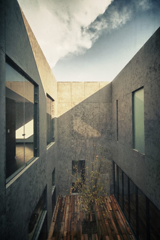 The project is developed around a central patio which provides different views, natural lighting and cross-ventilation to the interior spaces. This void acts as the medullar element on the design process. It is the in situ result of the restricted views, the lack of visual elements in the surroundings and the land’s unfavorable location.