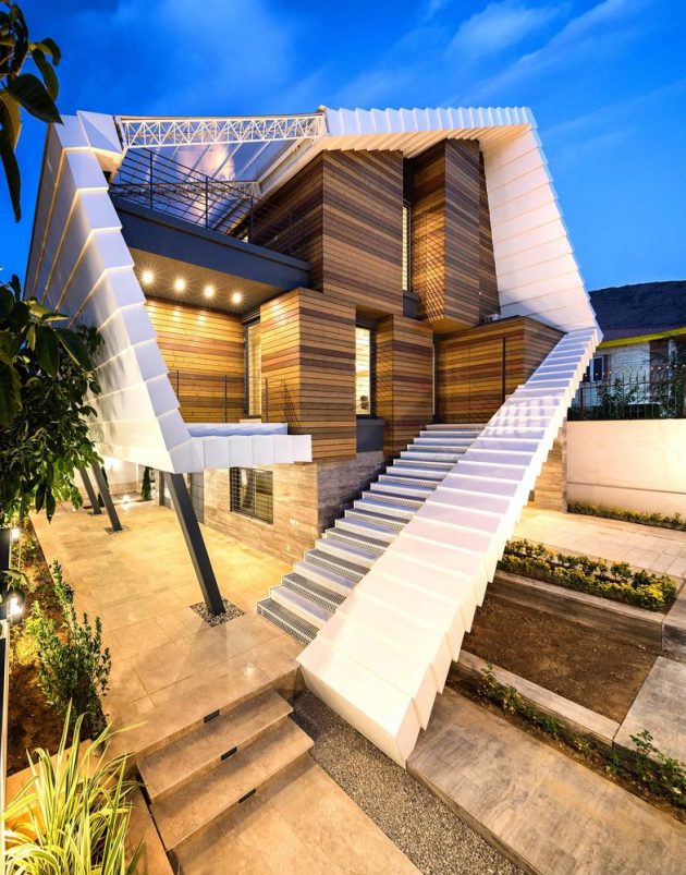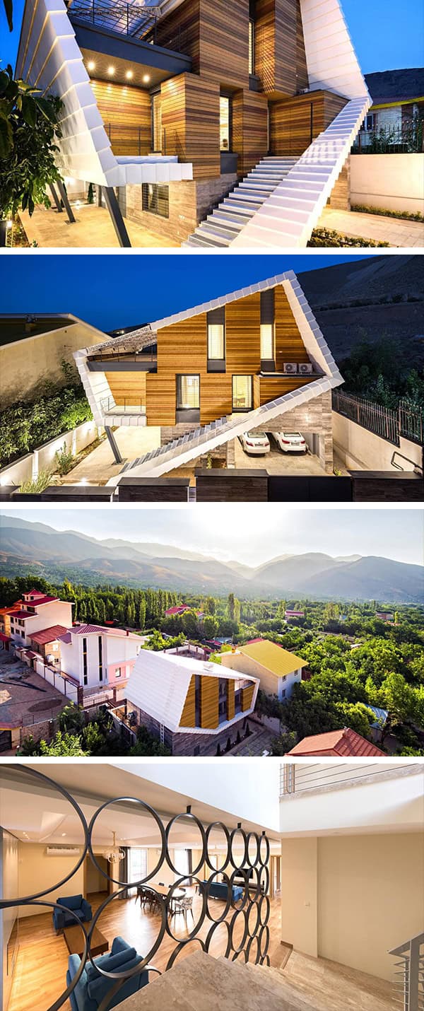 The Damavand Villa is a luxurious, contemporary residence designed by Shirazian Studio on a mountain slope in Iran. The site overlooks a beautiful plain and has a potential for unlimited, unobstructed views which is what the architects wanted to achieve with their design of a three story 4,628 square feet home. They have also placed a large terrace that offers an expansive vista towards the southern side.