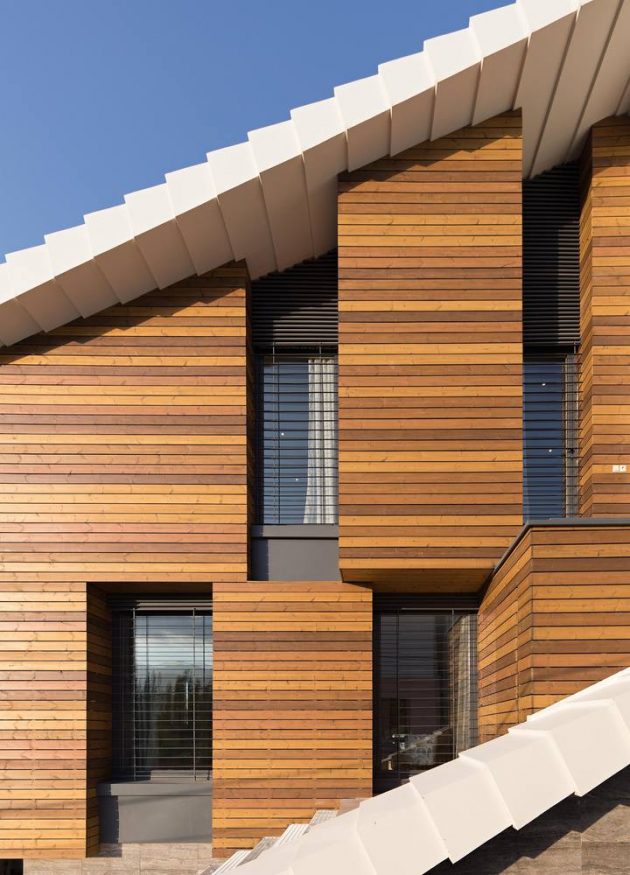 The cold climate and mountainous weather conditions pose a design challenge. So, a special consideration has been given to snow removal from the roof (to reduce the dead load tensions and protecting precipitation isolation), thermal isolation in the exterior walls, and accounting for higher efficiency of mechanical and water systems during intensive cold weather. For blocking heat being conducted through the floors, there are no voids or free vertical connections, despite the aesthetic preference of the architect.