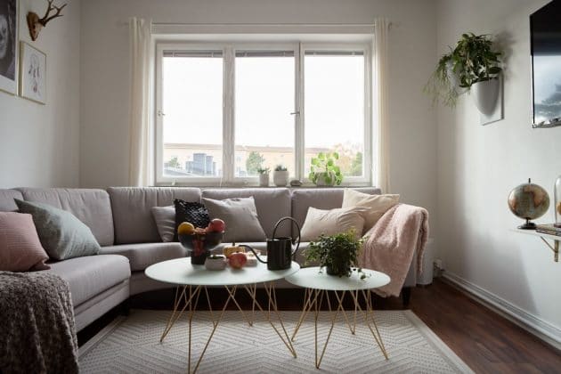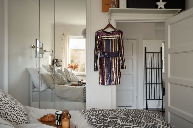 You must complete the set with extra cushions, a blanket at the foot of the bed, matching curtains and a small rug or pair on each side. You can take as a reference to the bedroom of this 43 m² apartment in Stockholm which is a good example of how to combine textiles, light colors, plain, with some cushion stamped but not overwhelmed.