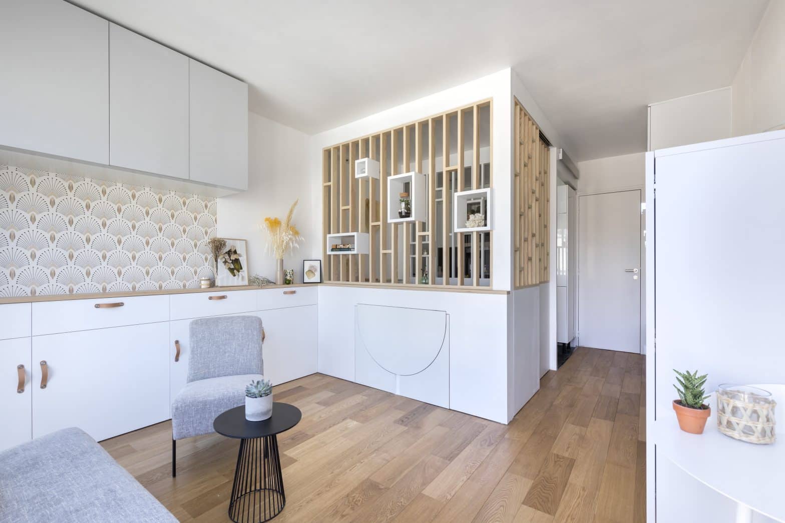 DRESS THE SIDE OF THE KITCHEN FURNITURE AND DELIMIT THE SPACES WITH A SCREEN