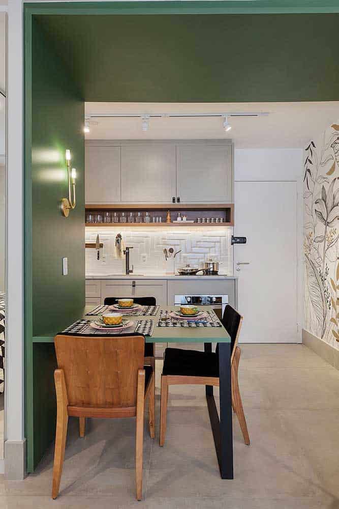 This format is very chosen for small apartments, as it is perfect for maintaining that interaction between family and friends, having a larger and better-distributed space. Here, the important thing when decorating is to know that the two environments, because they are interconnected, need to be balanced, but not necessarily carry the same style of decoration. This different design choice for the two environments also helps to delimit them without having to separate them by a wall.