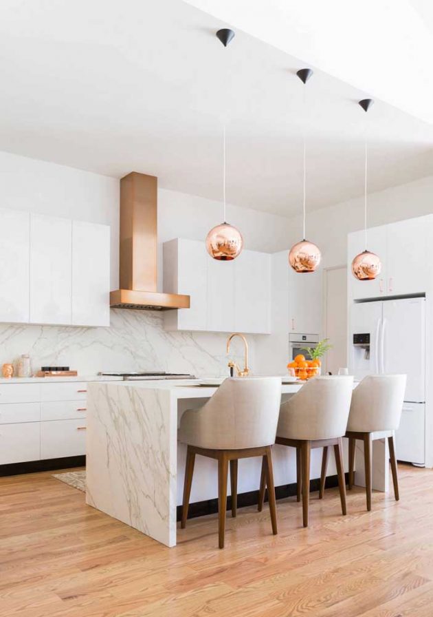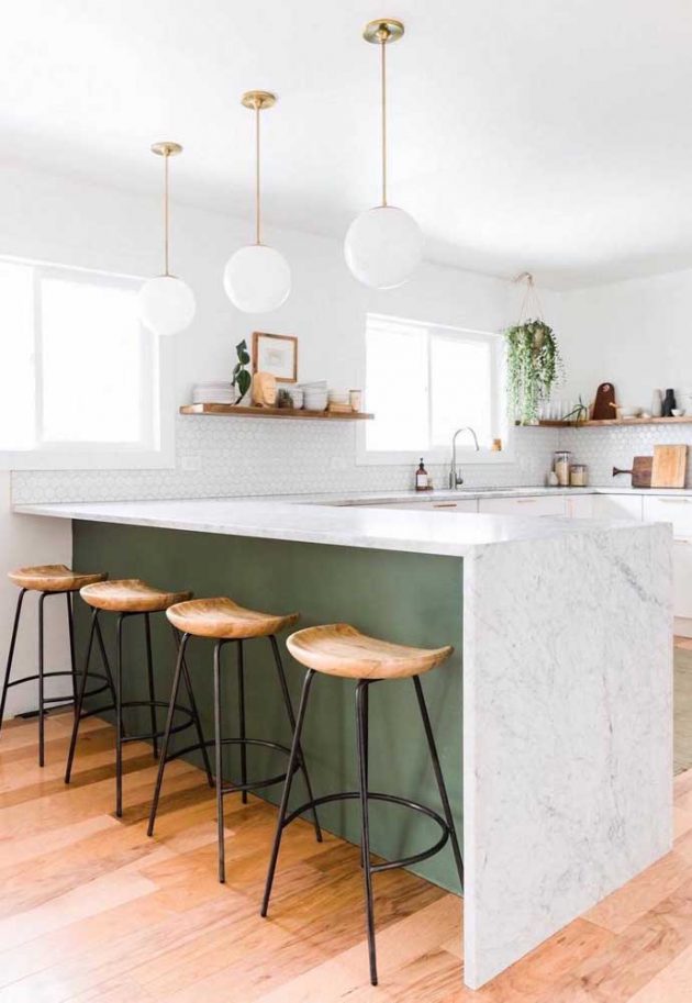 This is one of the most chosen options for those who dream of an integrated kitchen. The integrated kitchen with counter or counter, better known as American, can better enjoy the environment, being functional since it offers the option of the counter and stools, in addition to helping delimit the integrated rooms. A good tip is to bet on cool pendants to install on the bench. The vision for the other environments remains open and with a stylish design.