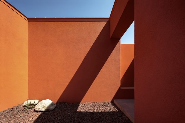 The house’s environmental strategy is embedded in its material logic rather than added as technology. The massive concrete envelope provides high thermal inertia, maintaining comfort across seasonal extremes. Thick walls store heat during the day and release it slowly at night, reducing mechanical energy demand.