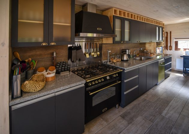 The workers had to face both the impetuous weather and the difficult road to reach the ground. The supporting structure of the house is made through metal profiles and SIP panel, covered with a Zinc alum panel, which added together, provide us with sufficient stability to face the greatest requesting effort in the area, a wind of 150 km / h.