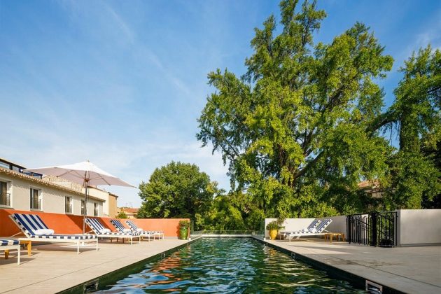 Nestled in the heart of a 200-hectare vineyard cultivated entirely in organic farming, Villa La Coste stands out as the popular destination for epicureans who love wine, art and architecture. From the winery signed Jean Nouvel to the art center designed by Tadao Ando, ​​the giant spider by Louise Bourgeois and the mosaic by Pablo Picasso, it is between the forests of oaks and century-old pines that 30 major works are installed in the open air. The 28 suites rely on a refined but terribly attractive decoration.