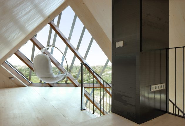 From the architects: “The concept of the house is inspired by the dune landscape of one of the northern Dutch islands in which the house is embedded. The programmatic configuration is derived from the experience of walking through the dunes; it exposes a sequence of view points on the dune landscape: from submerged and intimate viewpoints to elevated and stretched out views over the sea.