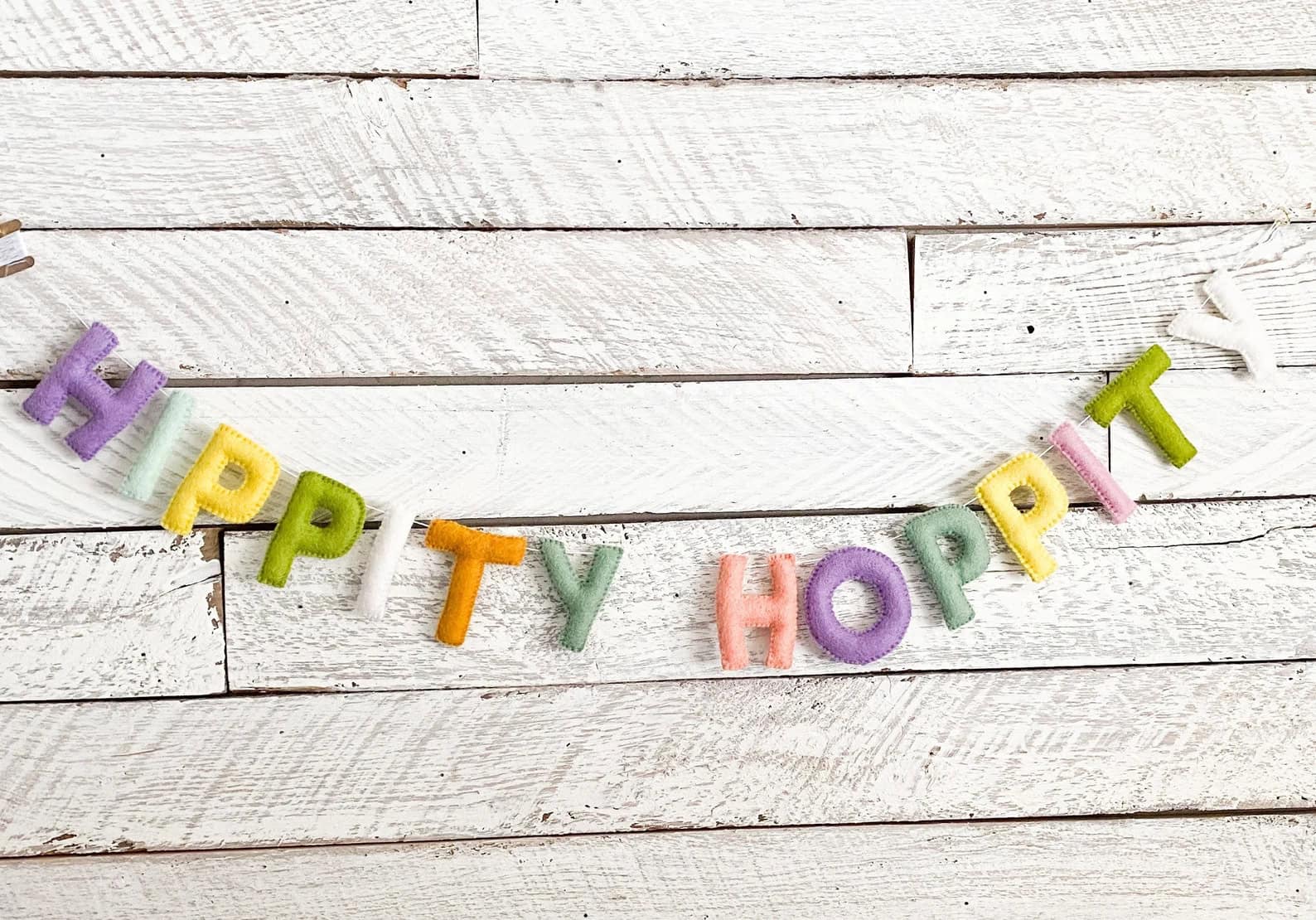 10. Hippity Hoppity Easter Felt Ball Word Garland