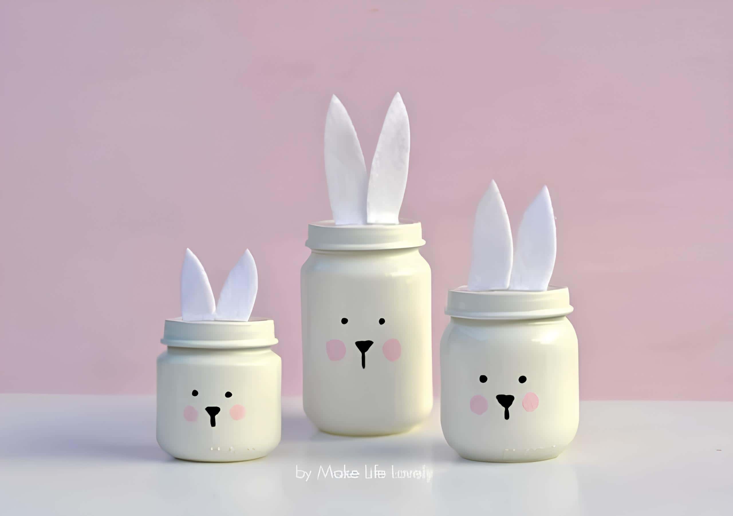 These DIY bunny mason jars make the cutest Easter craft for kids and adults alike — just paint, add ears, and display! Image via makelifelovely.com