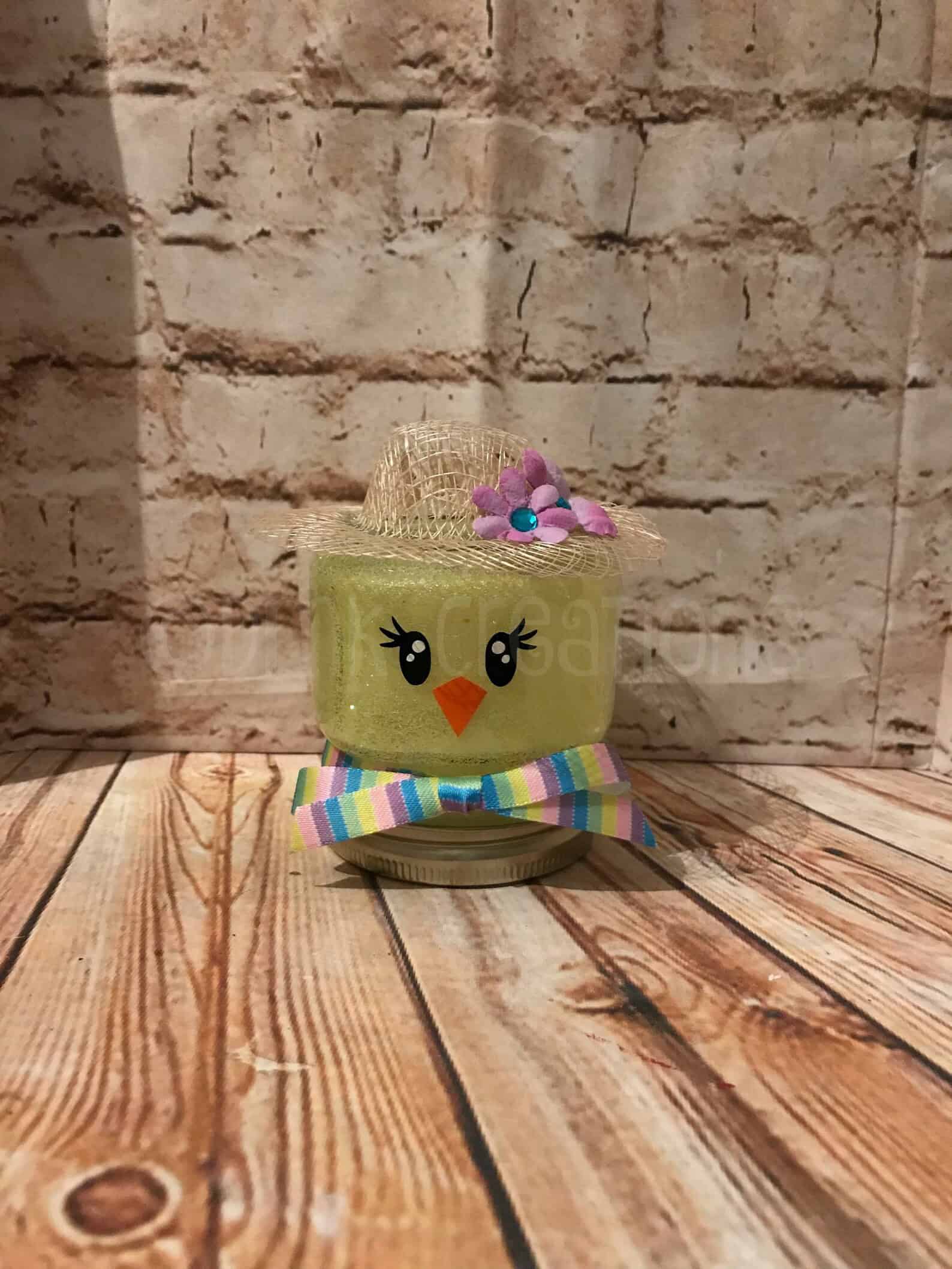 Glitter Easter Chick Mason Jar with Bonnet and Bow
