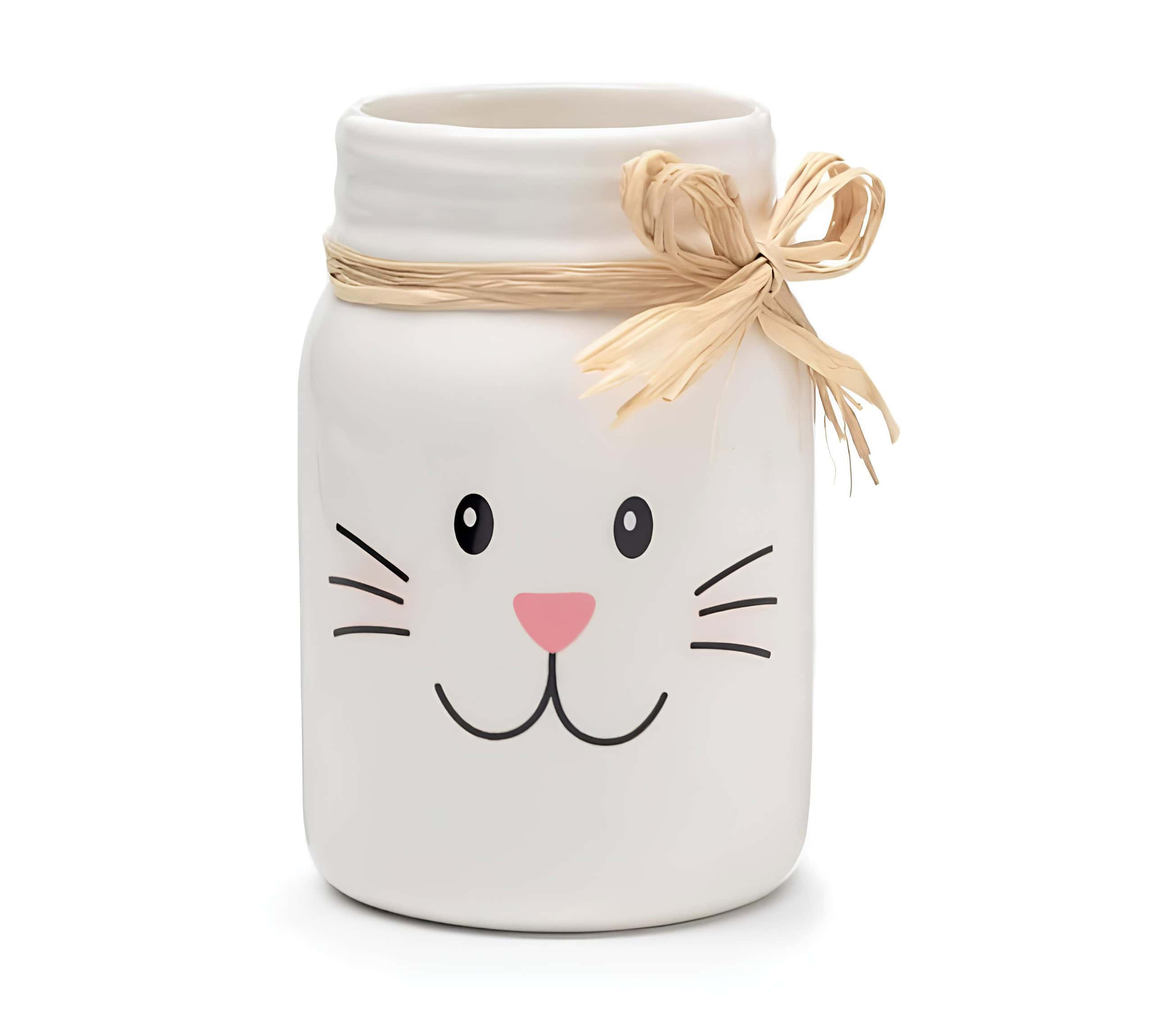 Ceramic-style Bunny Mason Jar With Straw Ribbon — Minimalist Easter Decor