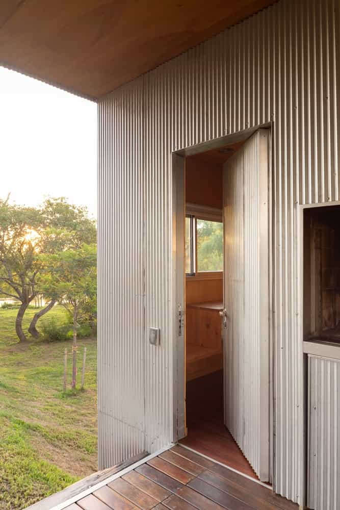 The private zone—comprising bedrooms, bathrooms, storage, and mechanical rooms—is constructed using Steel Frame technology with exterior Minionda Cincalum cladding and interior phenolic panels, ensuring durability against humidity.