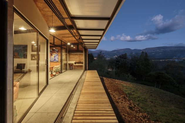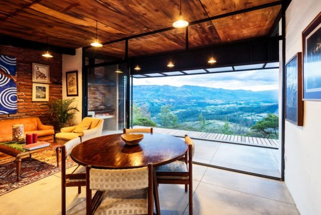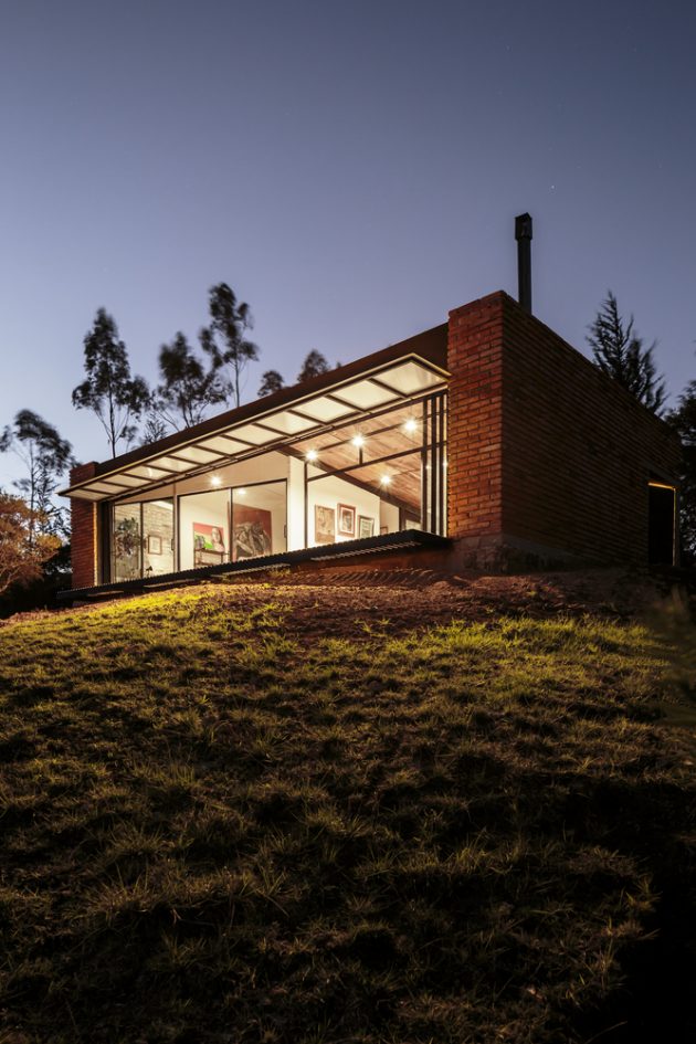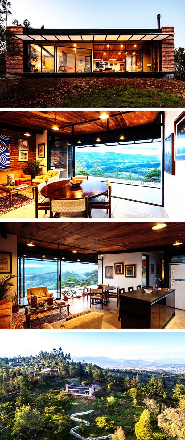 The El Guarango House is built right into a hillside in Quito, Ecuador. This 1,162 square feet weekend home is designed by Bernardo Bustamante to integrate modern living into a peaceful, rural setting. The modern home nestles into its surroundings, sitting alone on top of a hill, offering spectacular views of the growing urban area below and the valley into the distance.