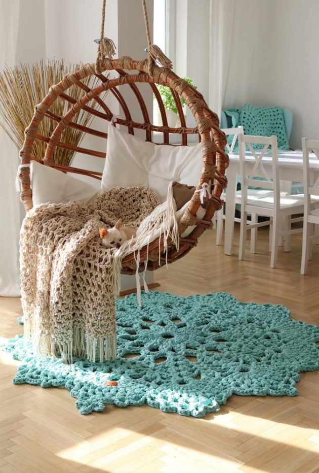 Cute and cosy, the round crochet living room rug has won hearts out there. And no wonder, after all the piece carries a lot of originality (because probably nobody has a second one like this one) and a certain affective touch as it is made entirely by hand.