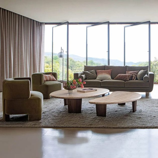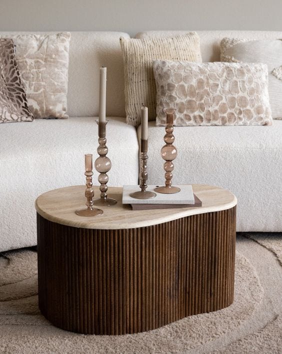 A travertine coffee table is ideal for adding a touch of class to your living room, as it has a luminous and clear finish that will help illuminate the room. But also its irregular and imperfect side will add authenticity to the room’s decoration. Although beige travertine is commonly used, it can also come in various shades of gray and dew. These are easy-going and neutral.