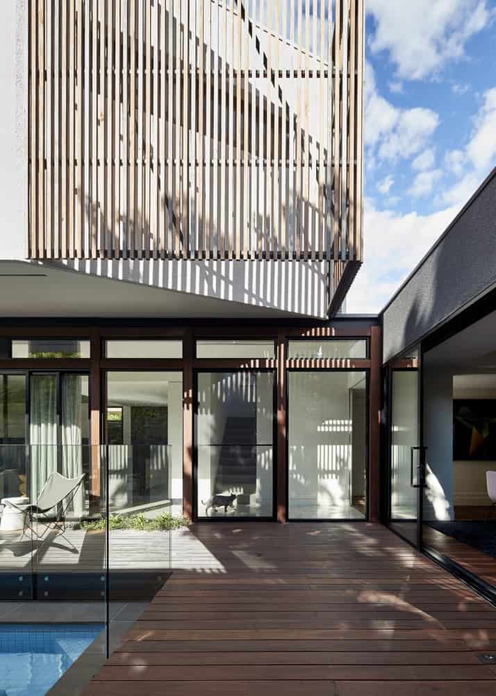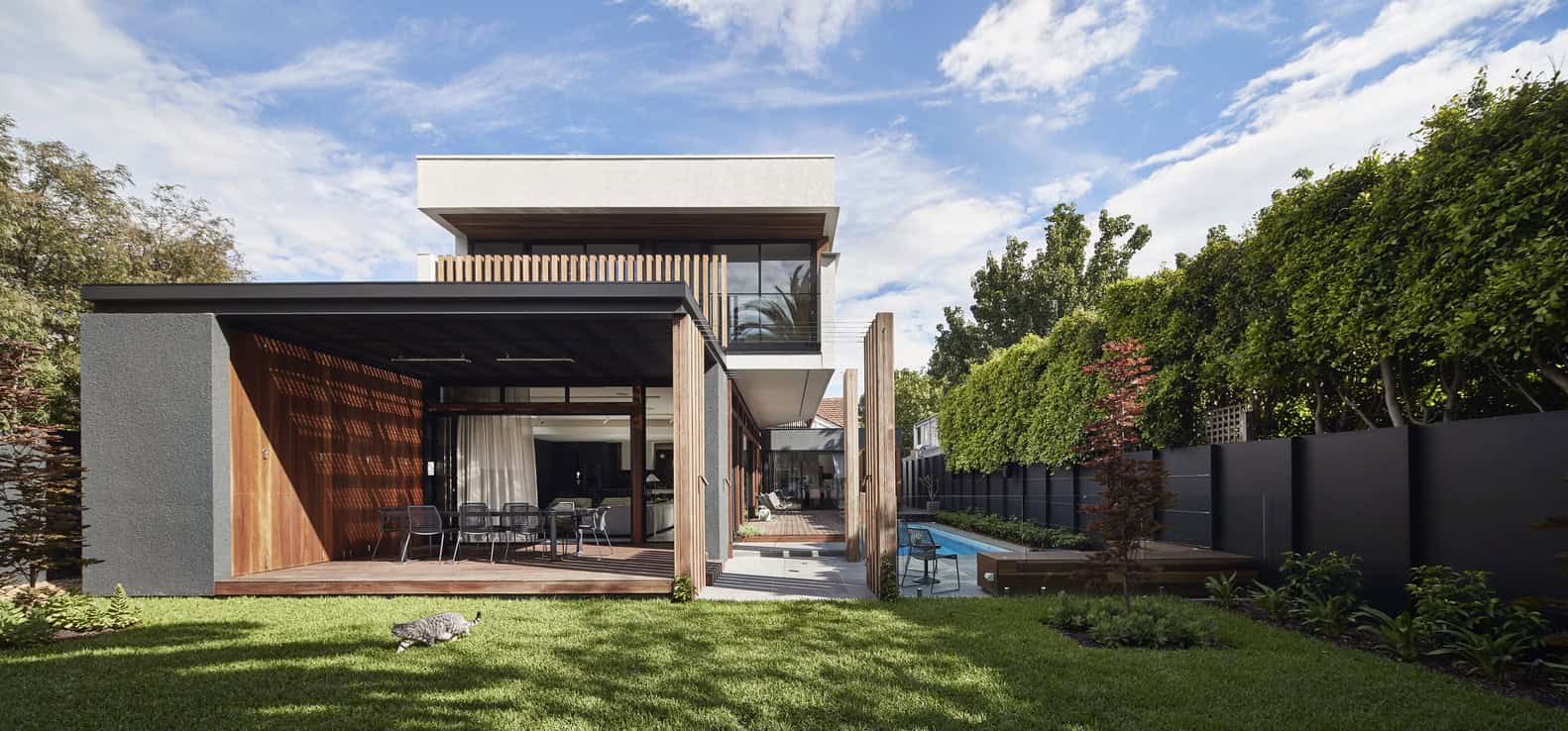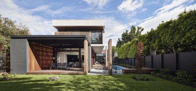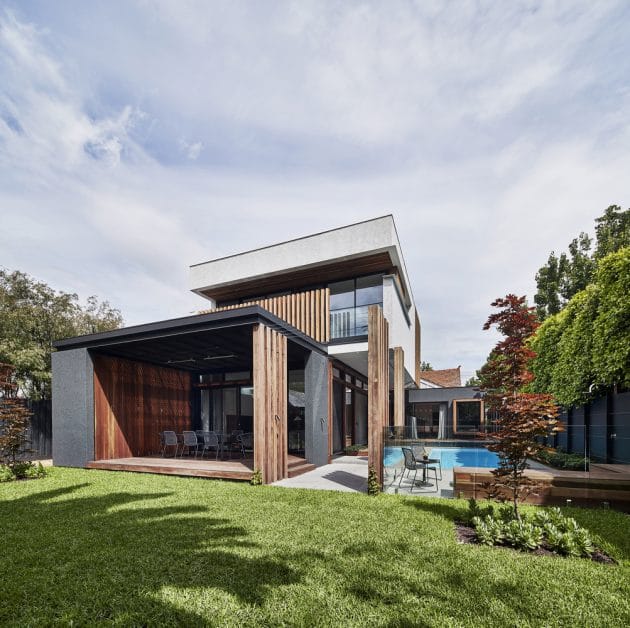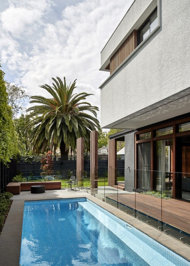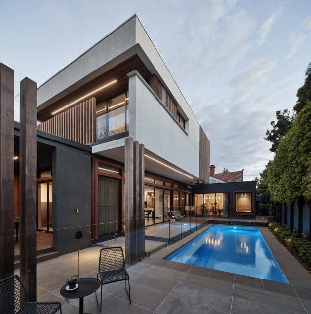 STAR Architecture has restored an original heritage Californian bungalow home in Elwood, Melbourne before extending it with a modern addition. Called the Elwood House, this 4,305 square foot has had its front area restored to its original looks while at the rear, it has received a modern two-story addition and a contemporary patio with a swimming pool.