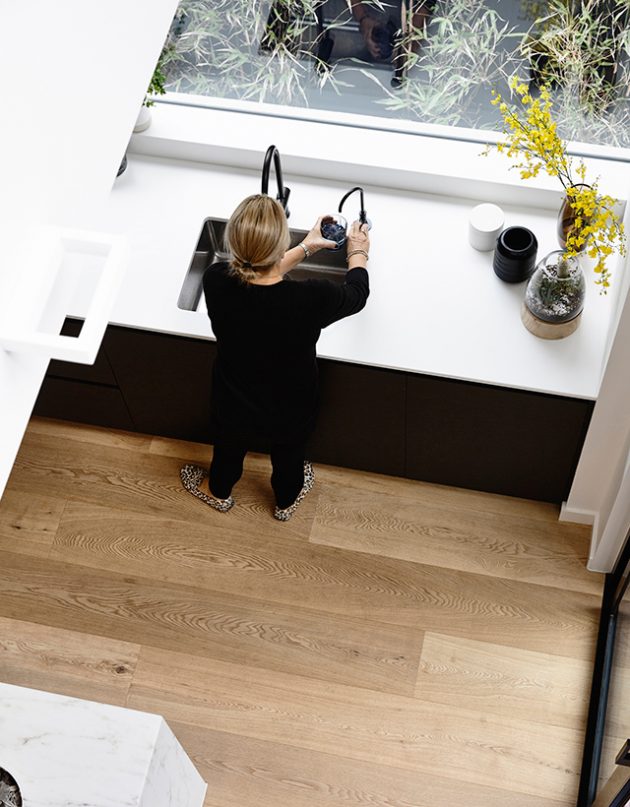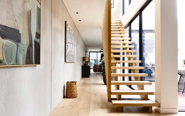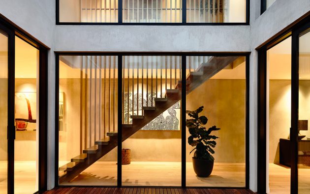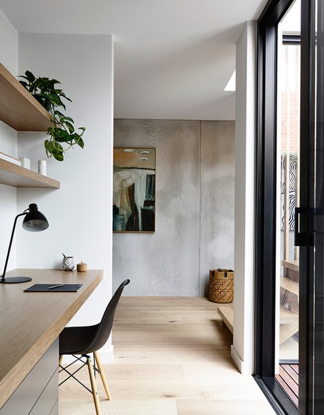 The layout of the Elwood Townhouse is focused around a glazed central courtyard on the ground floor that is surrounded by a study room, the kitchen and the living areas.