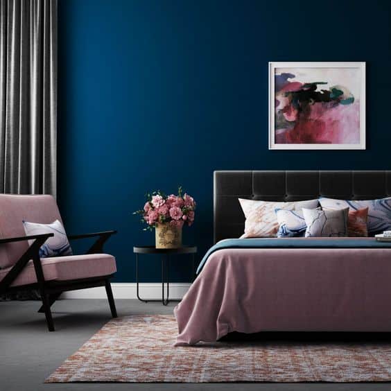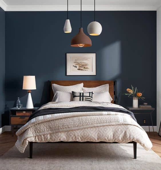 So that you don’t have an overloaded or monotonous decor, it’s important to balance the dose of blue with neutral colors, such as gray, beige, and white. Walls with blue paint in the bedroom can be softened with furniture and bedding in more neutral tones, making them look more pleasant.