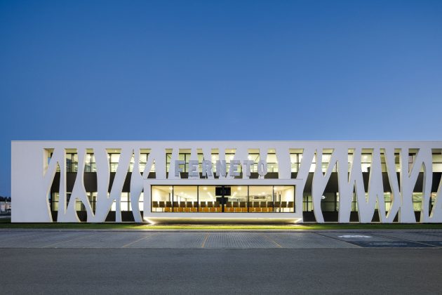The concept of the building was created taking into account the company’s principal activity, this being, the production of bakery and pastry machines which produce dough for bread and pastries. This was the idea behind the starting point of the composition of our façade. We observed that the dough presented an alvelolar pattern thus, we decided to implement it into the “manufacture” of the design of our façade.