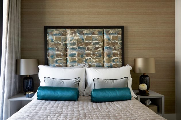 You would like to think that purchasing a property in a luxury development in Fitzrovia would mean that you would have space for all the ‘normal’ amenities. However, you would be wrong. These bedrooms were tiny, so small that it was essential that we went for bespoke beds. We had to fake the headboards in the smallest bedroom with a textured wallcovering, as we couldn’t spare 8cm to be able to put a padded headboard in.