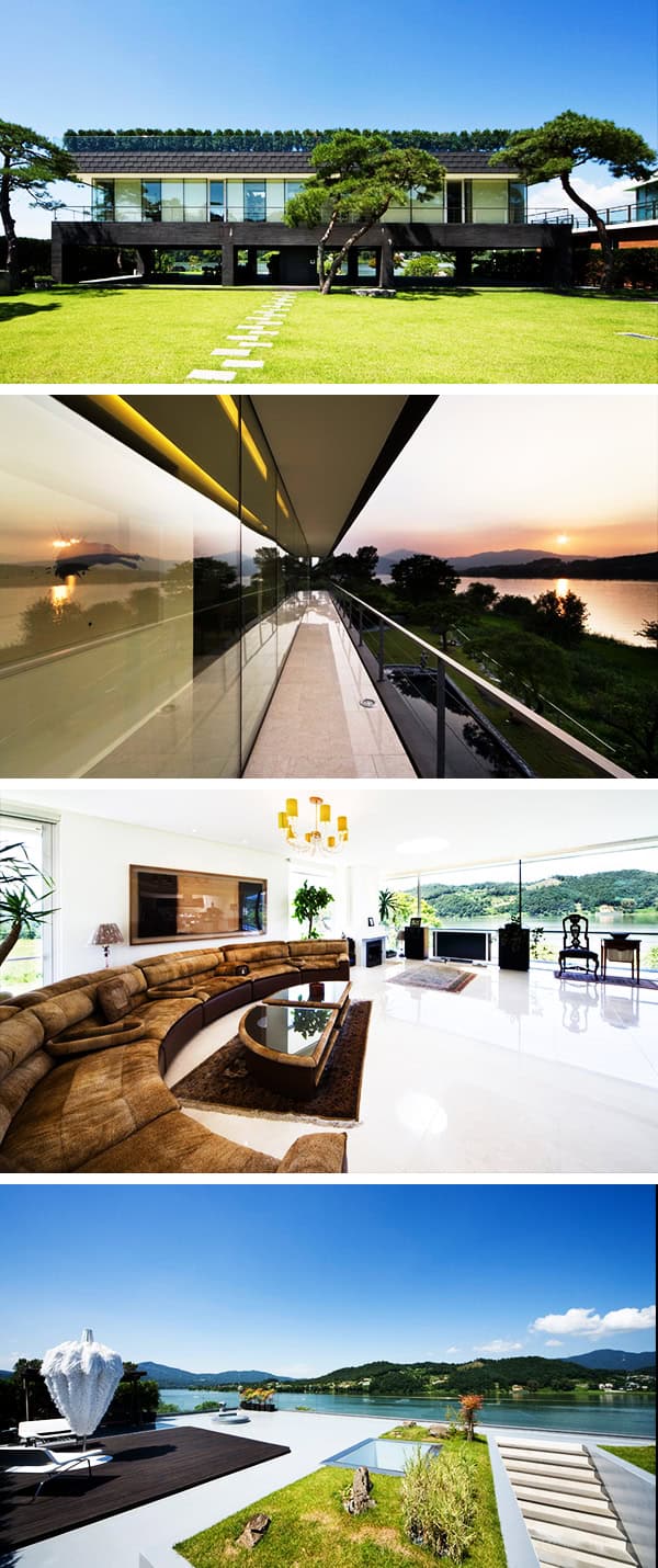 Hyunjoon Yoo Architects have designed the Floating House in Gyeonggi, South Korea but before the residence could even take shape, the design had to be approved by a Feng Shui specialist. After some of the details were made in accordance with Feng Shui, the architects set out to create an amazingly simple and very bright home that provides beautiful views of the nearby Bukhan River.