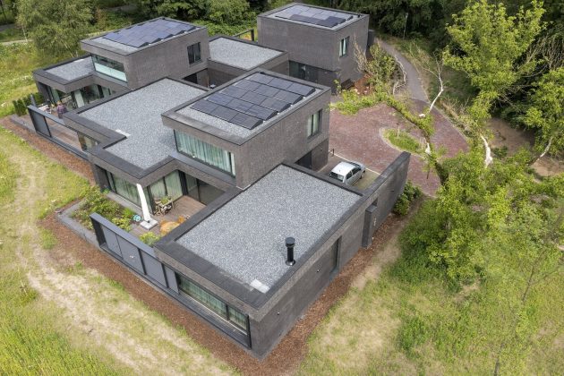 wUrck has completed the design of the Forest Patio Villas in Zeist, a small Dutch city between Utrecht and Amersfoort. With almost 20,000 square feet of interior area, this project takes eleven outdated apartment buildings and turns them into contemporary living spaces with minimalist interiors that aim to make the most out of its forest surroundings.
