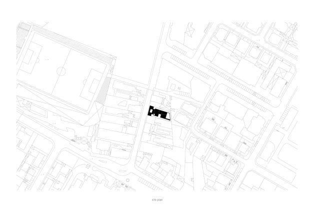 The intervention starts from a massive block that, impertinently, detaches from the limits and mimics the land plot outline. From here, by subtraction, the voids are defined, and the program is intuitively accommodated between patios in a constant refusal of a direct relationship with the exterior perimeter.