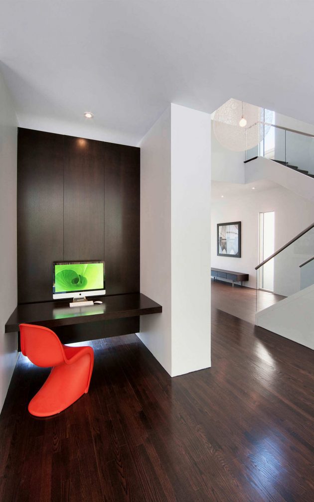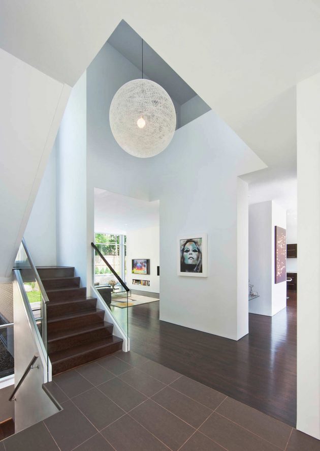 The Fraser Residence is a compact modern home situated in Ottawa, Canada. This elegant looking home boasts strong, linear lines both on its exterior and in its interior areas. The former consists of brick in an earth-toned shade combined with cedar siding, broken apart by dark bronze aluminium glazing.