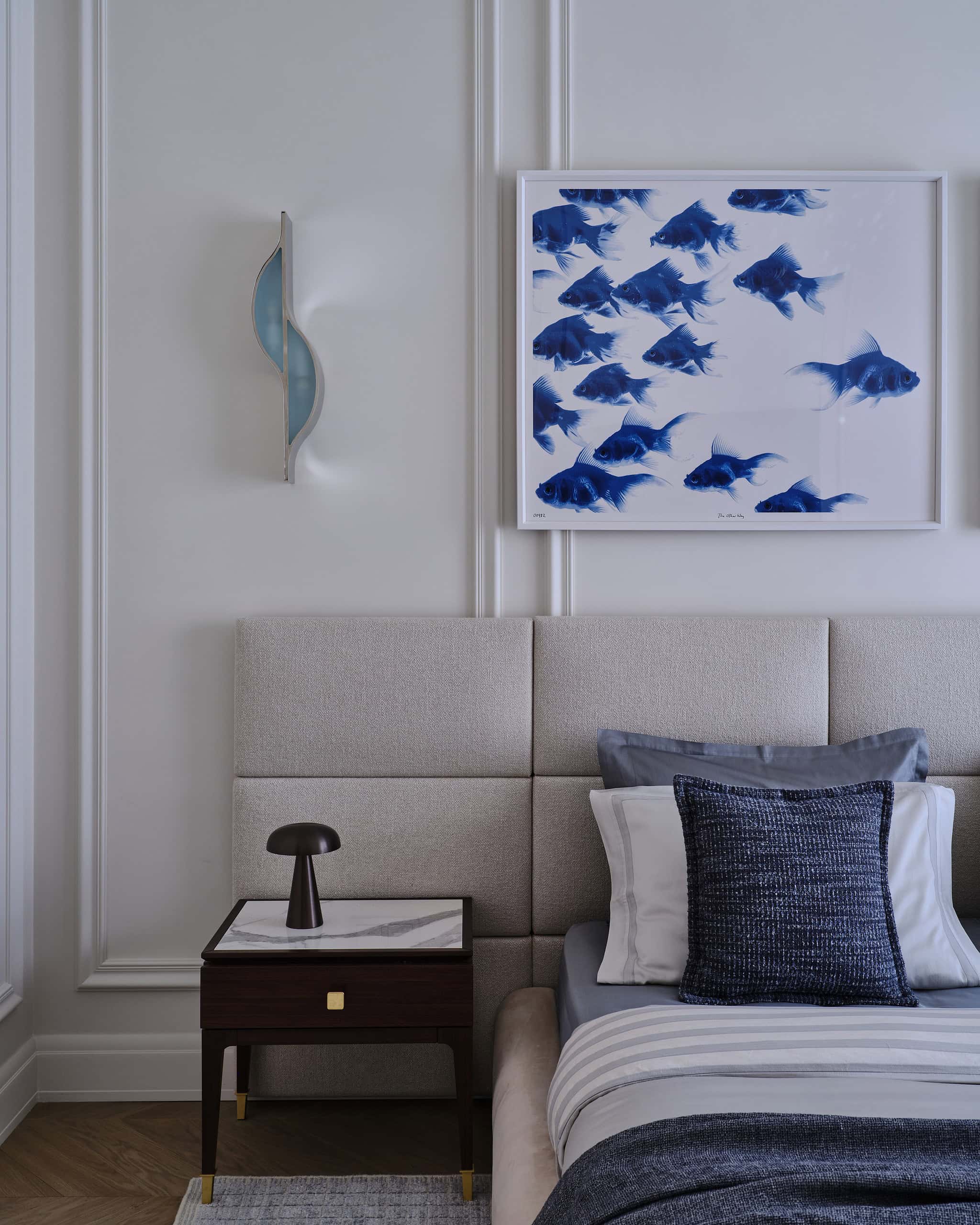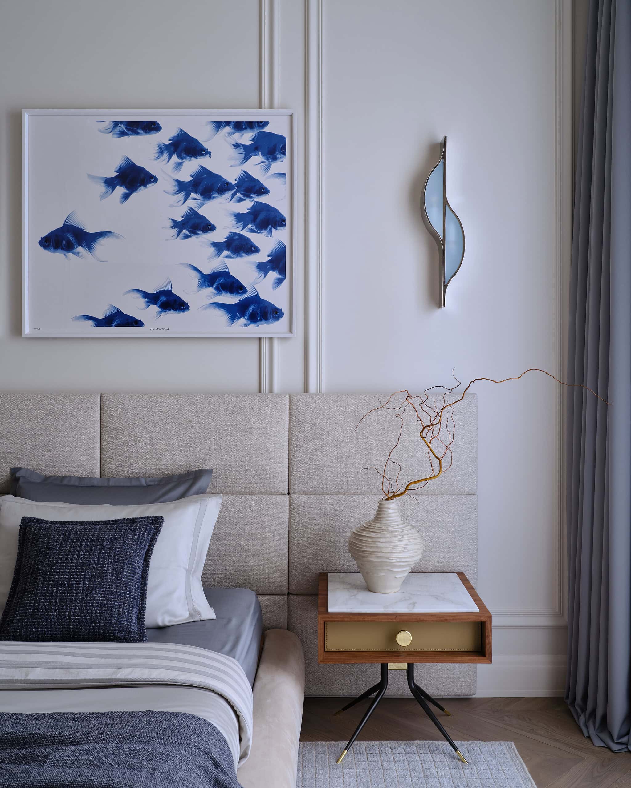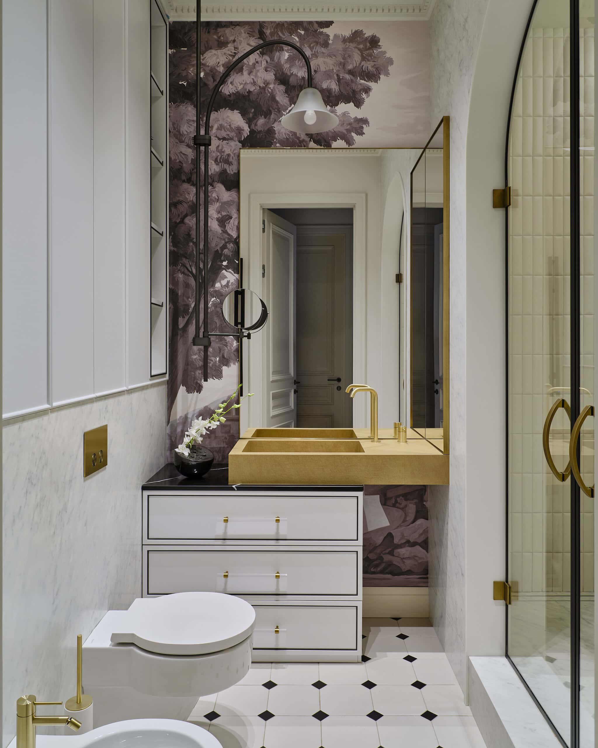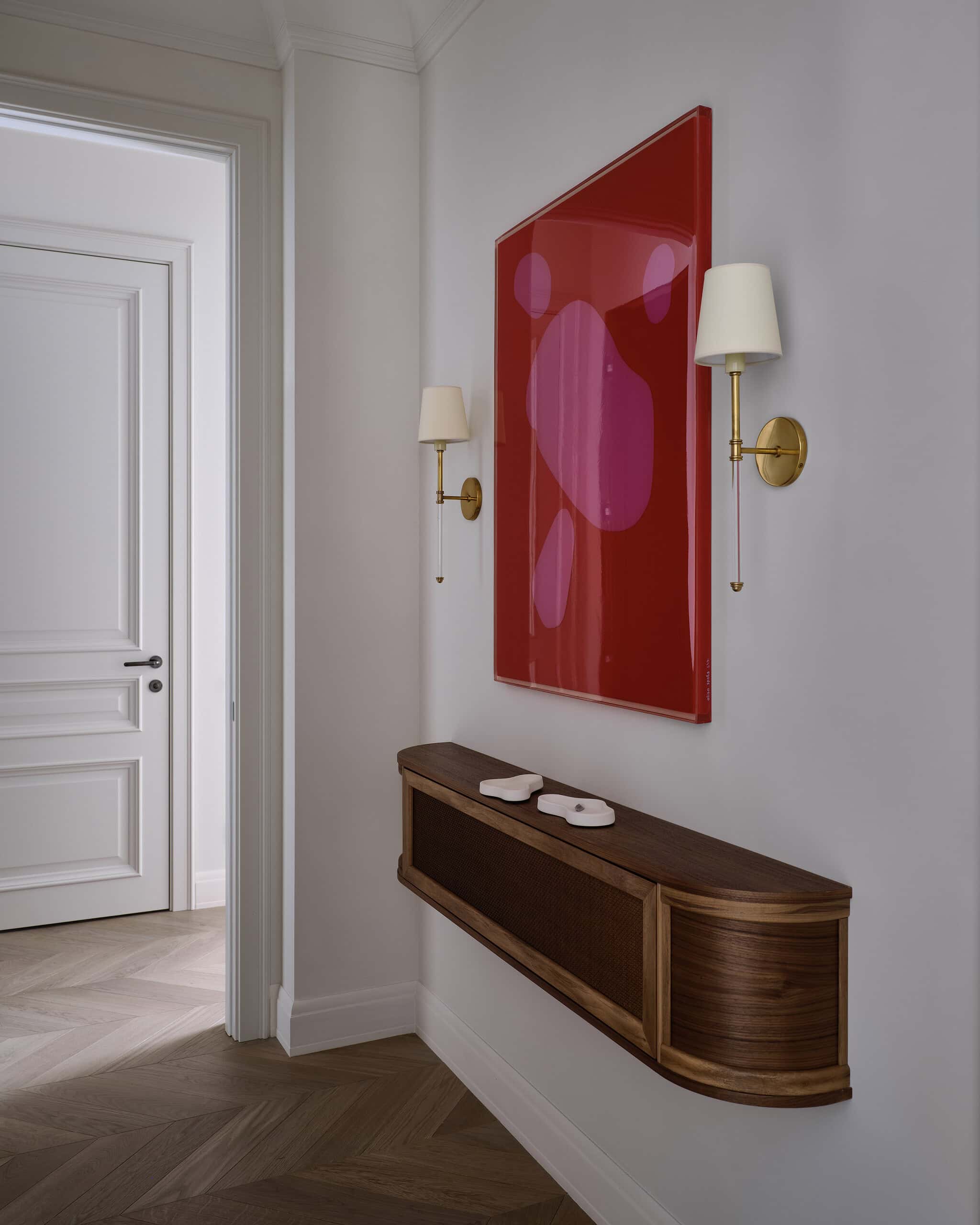 Lesya Pechenkina’s design for this Moscow apartment captures the timeless appeal of French classical design while embracing the practicality and warmth of American style. The result is a harmonious and bespoke space that offers both elegance and comfort, creating a home that feels both artistic and functional, perfectly suited to the needs of its inhabitants.