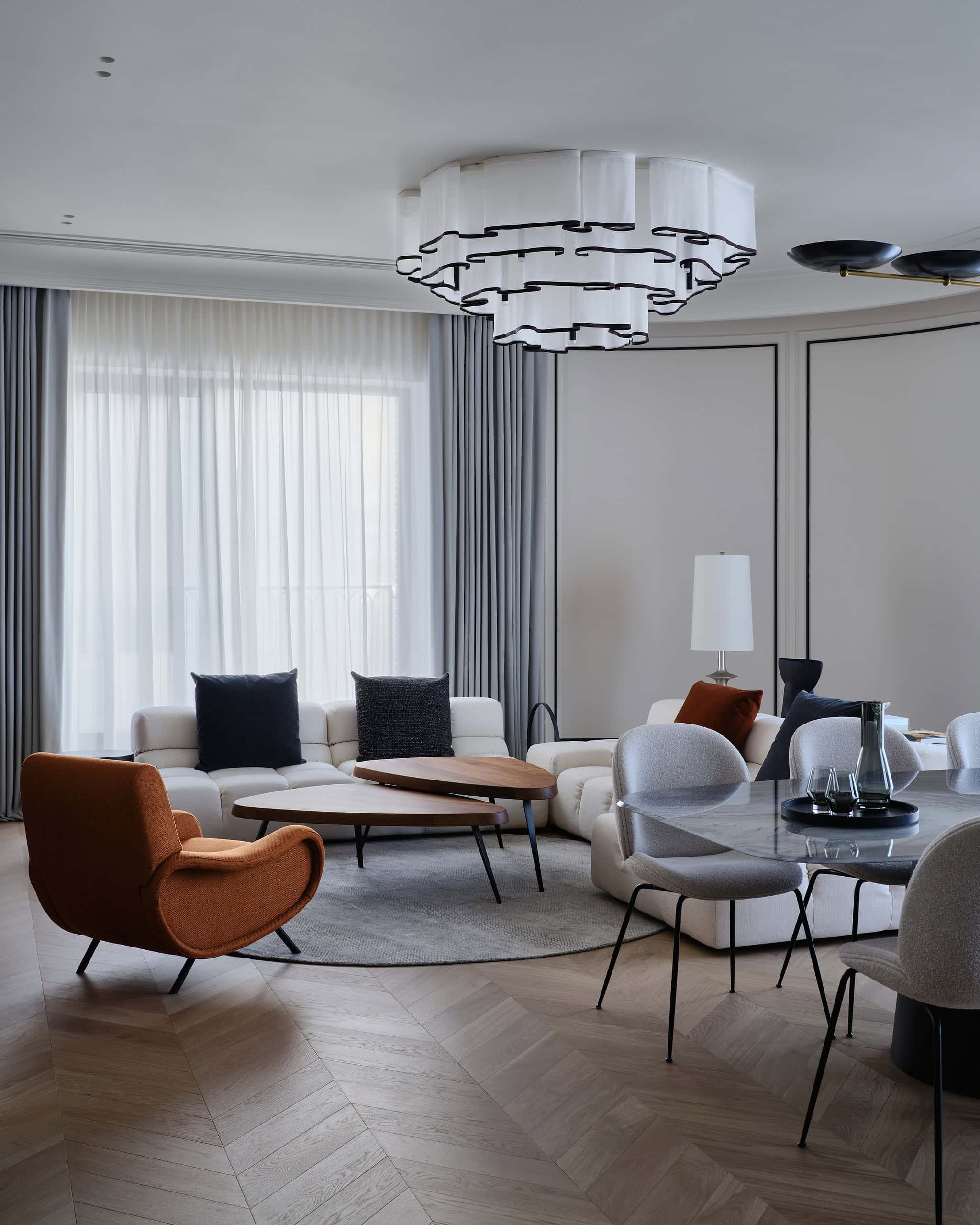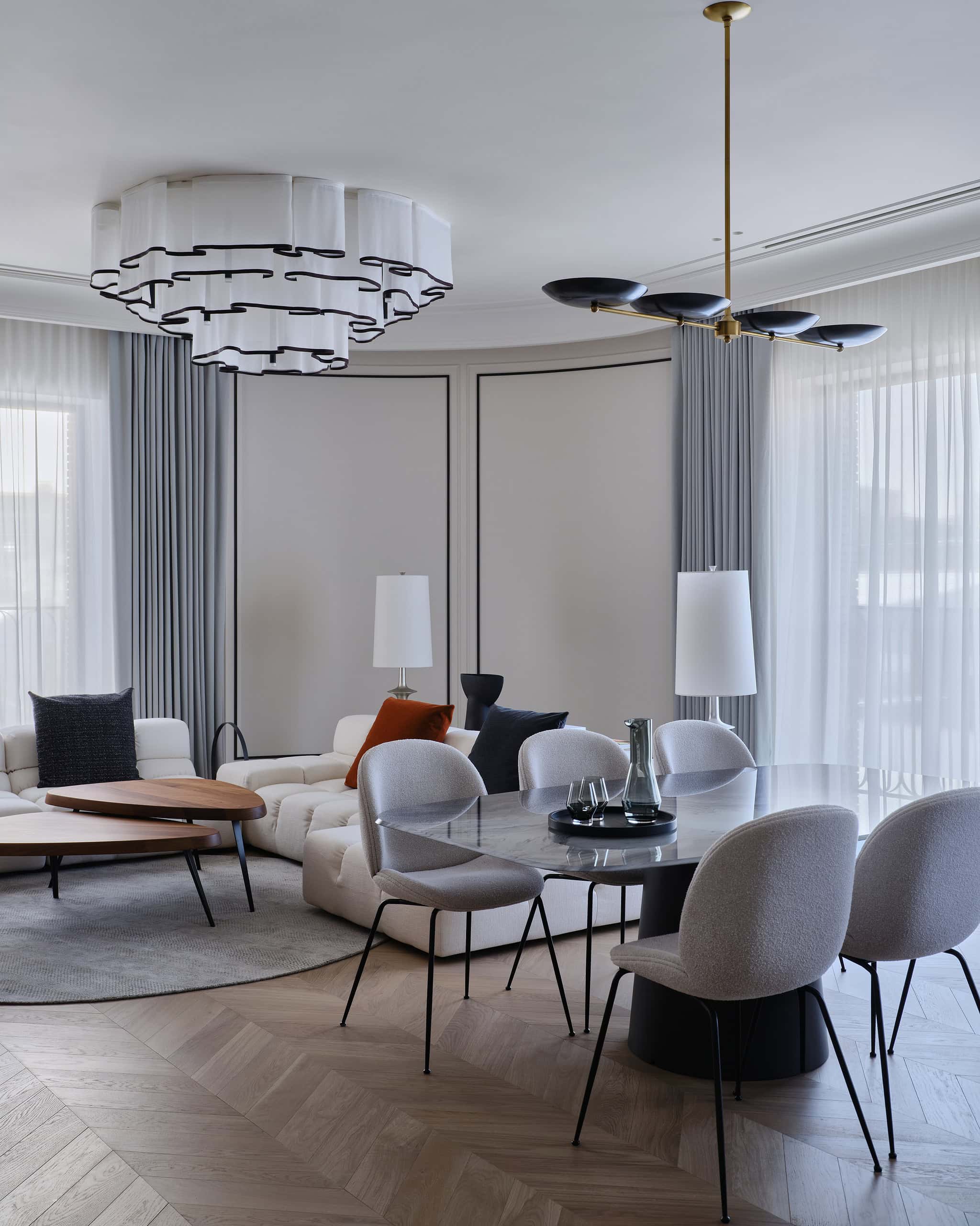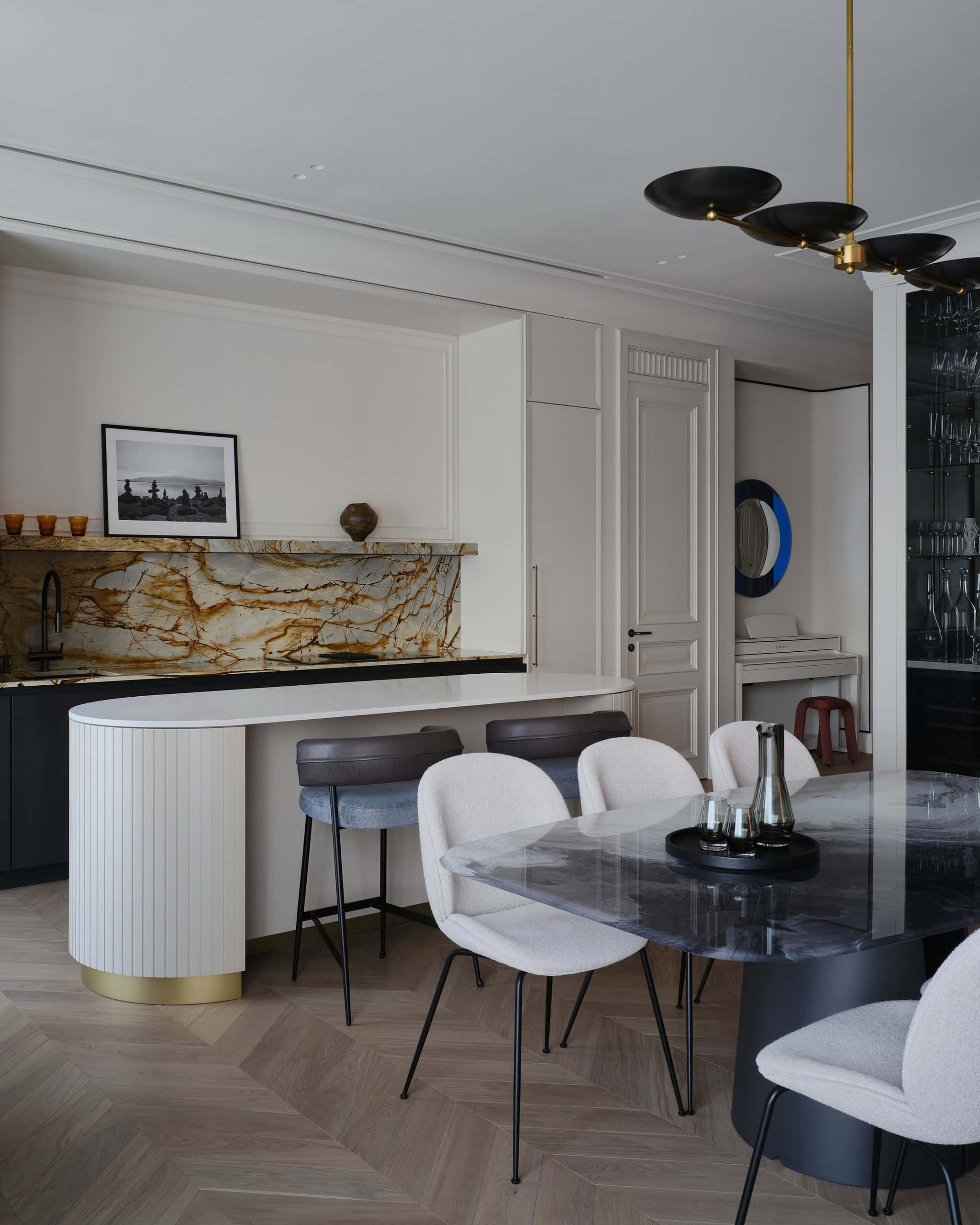 Located in Moscow, this spacious 188 m² apartment designed by Lesya Pechenkina of Simple Interiors perfectly blends French elegance with American comfort. Tailored for a family of four, with two daughters passionate about acting and travel, the apartment combines artistic expression with functionality. The design masterfully incorporates timeless French sophistication while embracing American practicality to create a home that is both luxurious and livable.