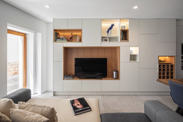 At just over 131 m², GD House faced the dual challenges of limited size and dense surroundings. The architects responded with a design that balances contemporary minimalism with references to the traditional architecture of Cascais, ensuring integration with the existing streetscape.
