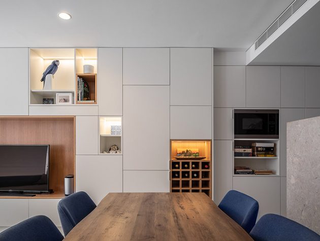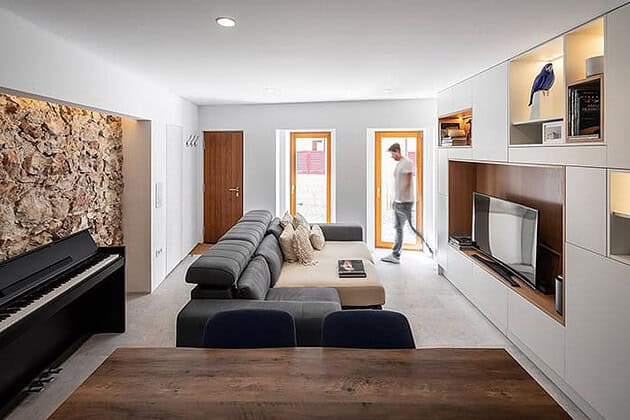The interior is defined by clean finishes and a restrained palette. Contemporary details emphasize simplicity, while subtle references to traditional local materials ensure the home remains rooted in its context.