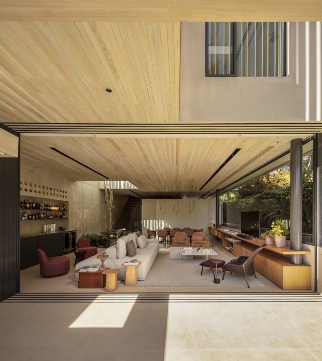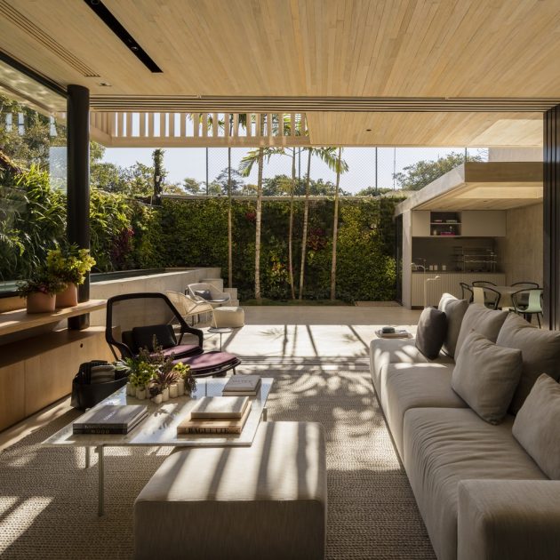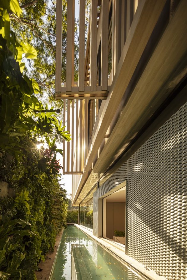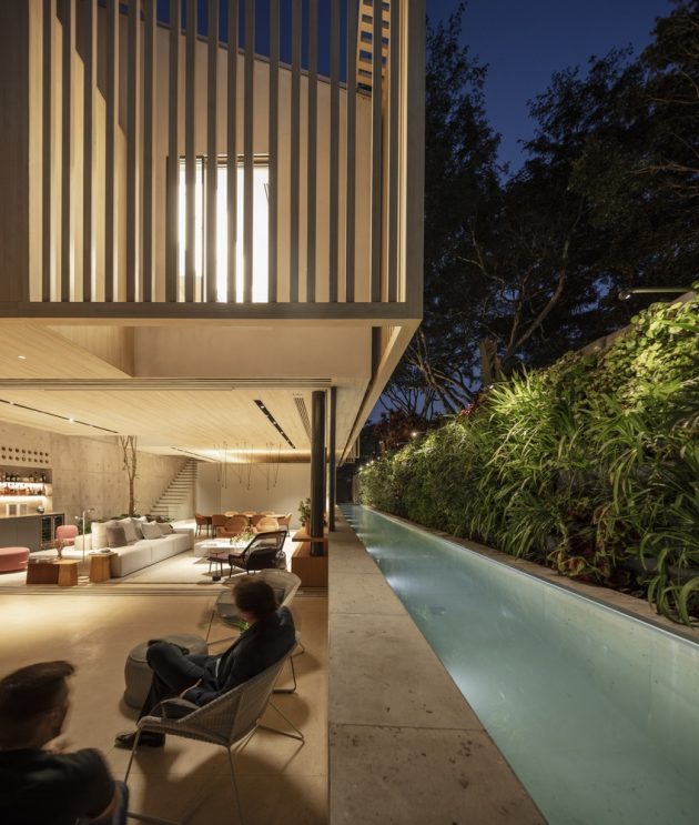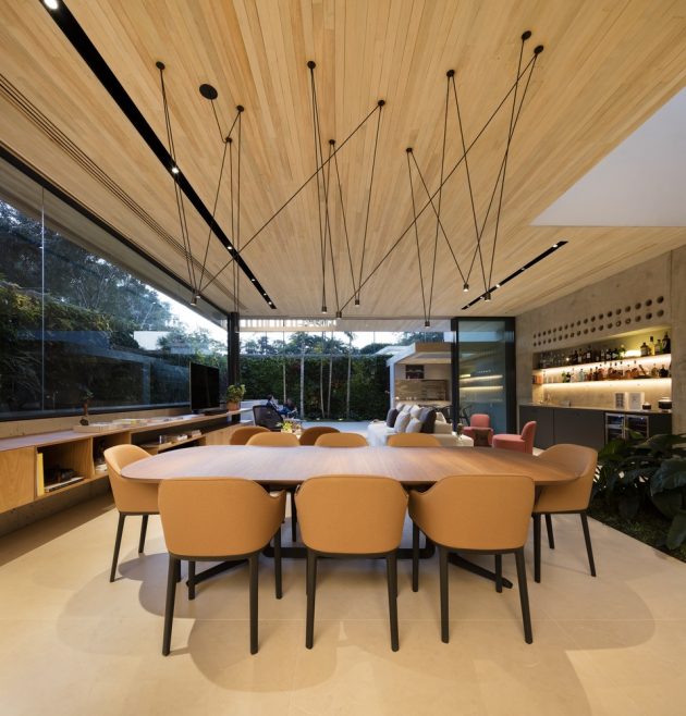 The GGL House is a stunning modern home located in the city of Sao Paulo in Brazil. It was designed by Studio AG Arquitetura for a young couple on a narrow plot. The home has been designed to highlight the connection between indoor-outdoor areas and that is easily noticeable by the lush landscaped areas that seamlessly connect to the interior.