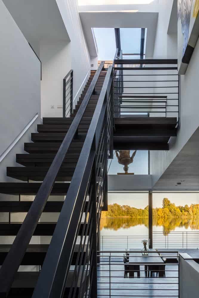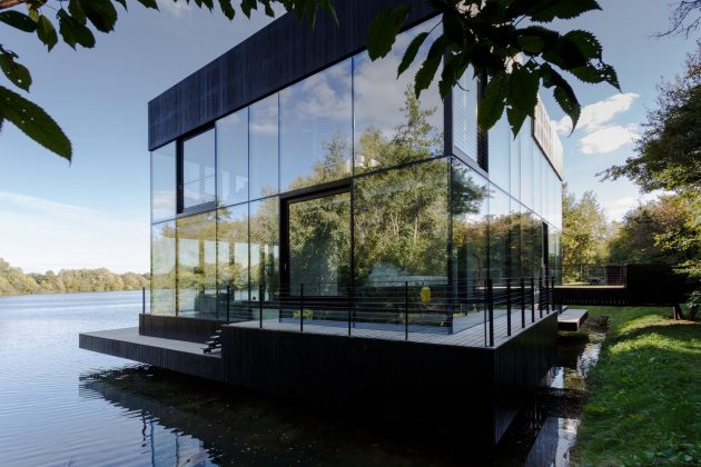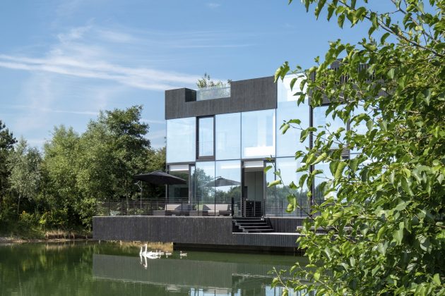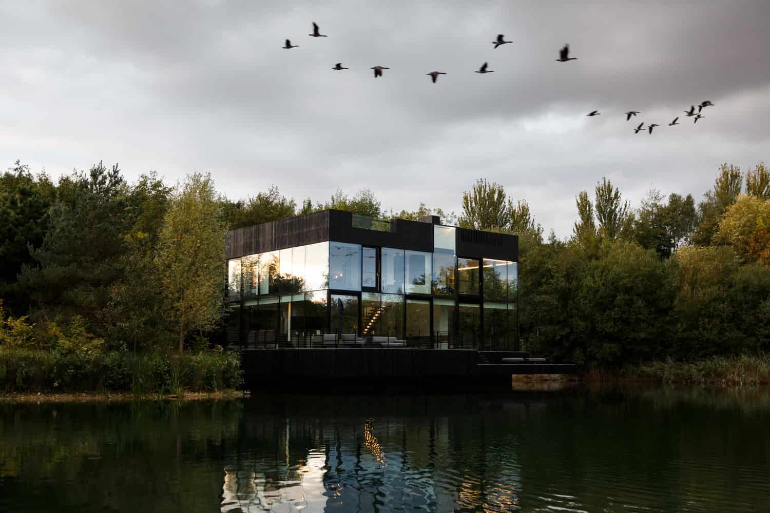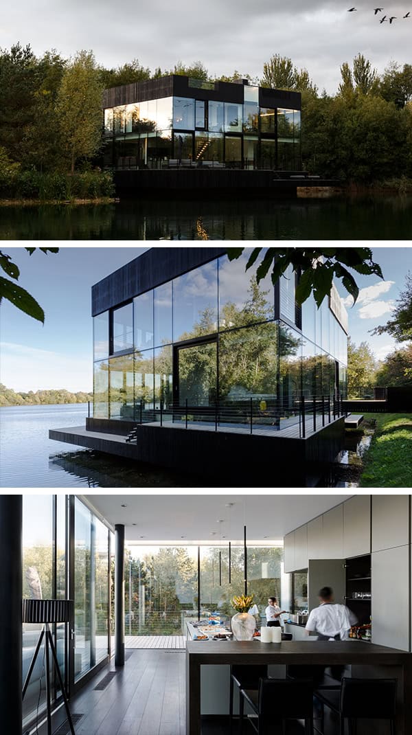 The waterfront of Lechlade in the United Kingdom has been gorgeously updated with a beautiful Glass Villa by the Dutch studio MecanooThe opulent dwelling was designed from the inside out, with the design focus set on delivering the best possible views of the surrounding environment, not just the lake, but the landscapes that flank it.