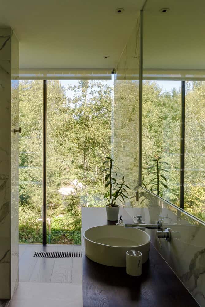 The house is designed from inside out, creating uninterrupted views to the surrounding nature while providing shelter and intimacy. All these aspects work together to ensure the house’s sense of timelessness. The villa is situated in a green oasis of trees and plants that hide the house from view.