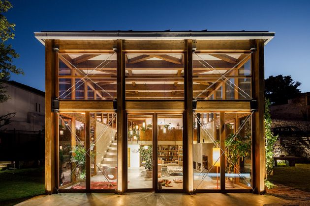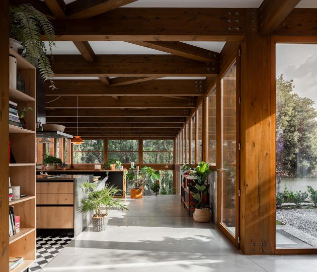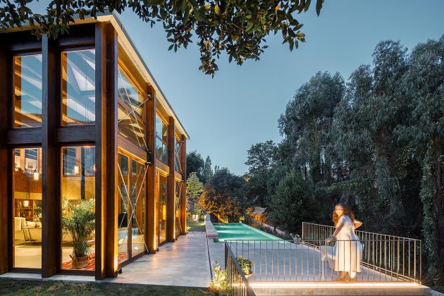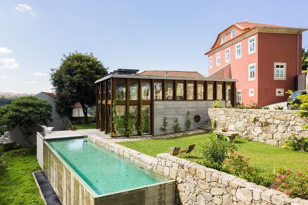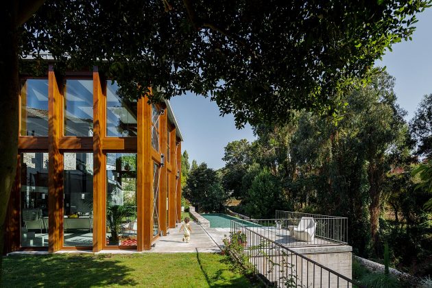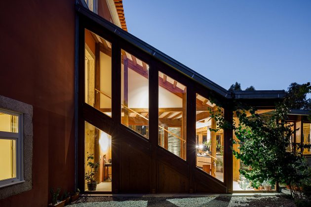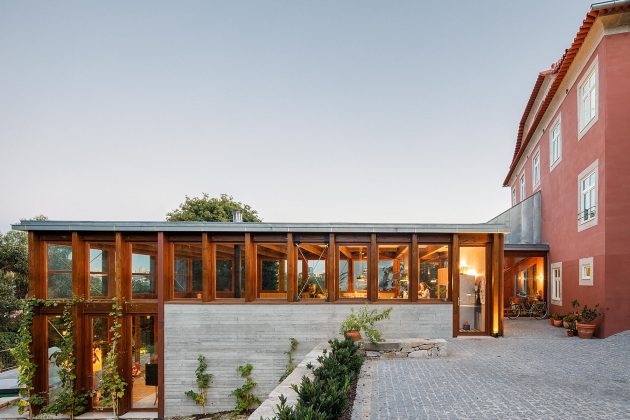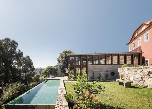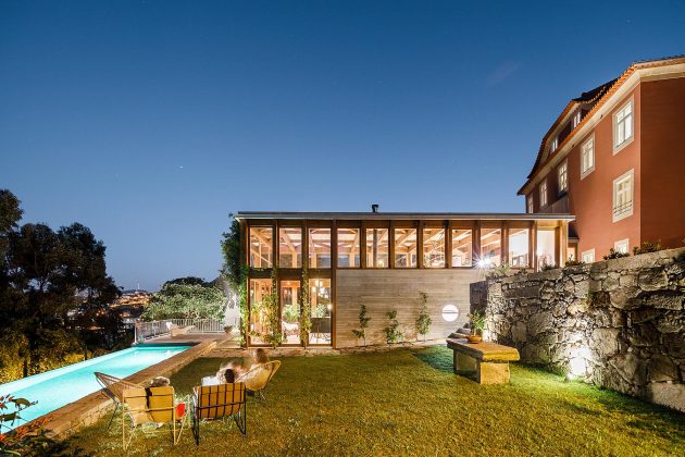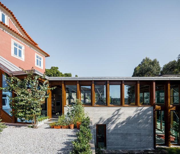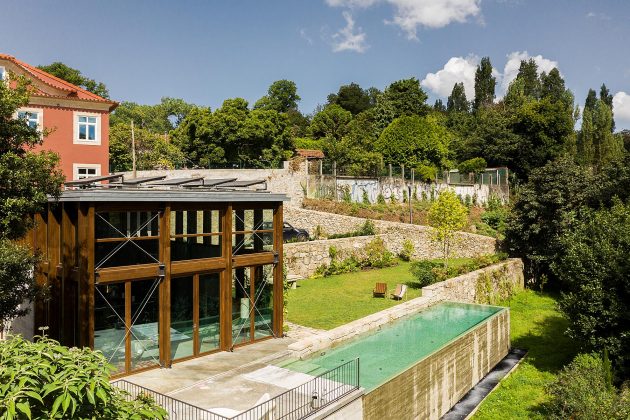 This intervention managed to reconcile the needs of a large family with the conditions resulting from the recovery of the built heritage, respecting the specificity of the place and the Municipal Master Plan itself. The solution found – the coupling of a body made of wood and glass – allows to expand the living area of the building while preserving the integrity of the pre-existence and without coming into conflict with it, while allowing full and effective communication with the garden . The choice of wood makes it possible, in some way, to eliminate the weight of the relatively extensive expansion that had to be carried out, and to differentiate the contemporary intervention from the 19th century building.