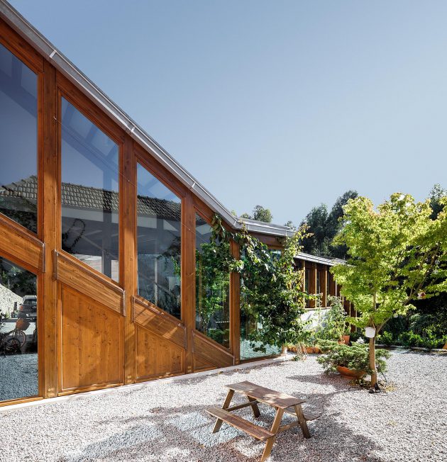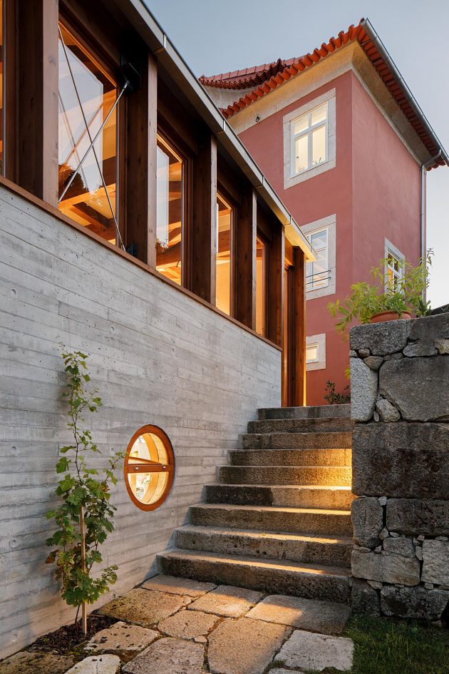 The primitive house, which was completely in ruins, was recovered using the techniques and conventional architectural language of the original historical period. The extension of the building was made at a lower level, taking advantage of the terraces, using wood and concrete, clearly demarcating the addition and the original in chronological terms. All the walls of the perimeter were recovered, as well as the retaining walls of the terraces, as well as the garden, the existing species were preserved and others were incorporated according to the specificity of the place. The pool was designed in such a way as not to modify the orography. The overall result has proved to be quite harmonious, with the new elements added being practically invisible to anyone traveling through the «Caminhos do Romântico».