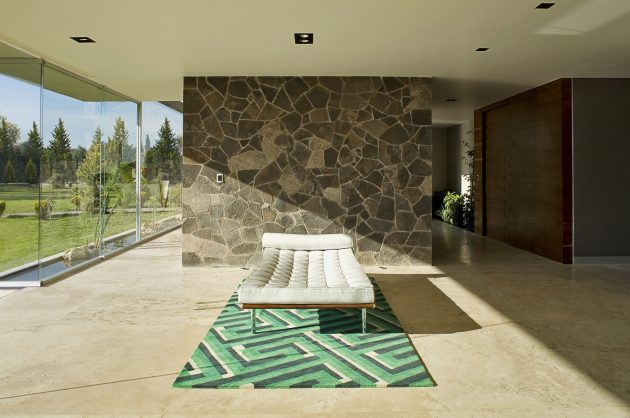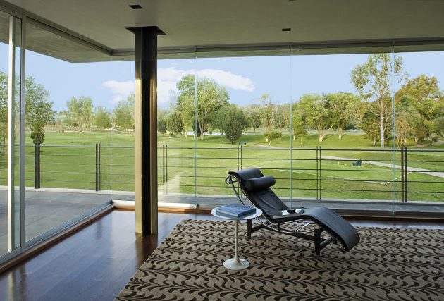The glass walls also make sure to provide beautiful views of the stunning greenery that surrounds the home.